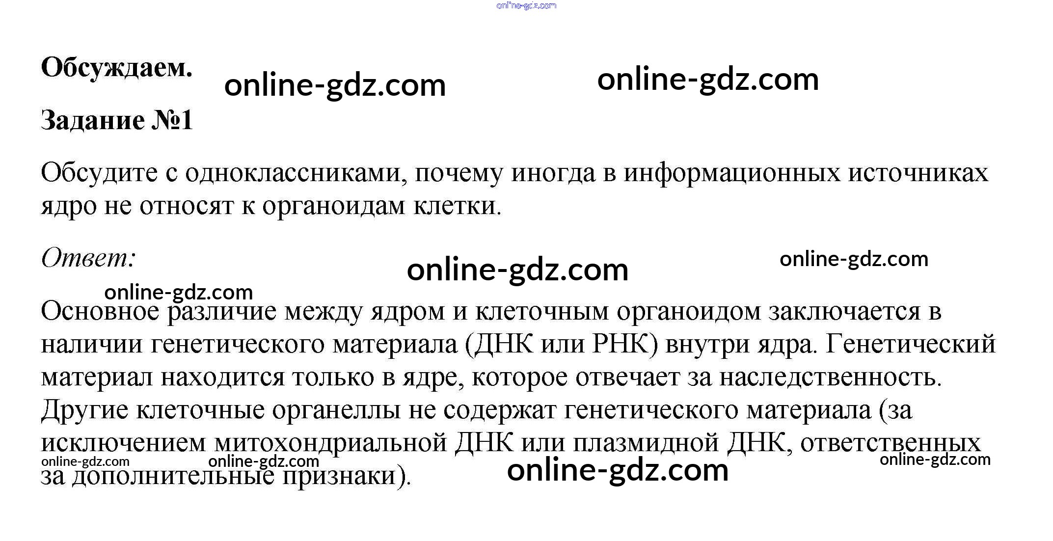 Готовые домашние задания по Биологии за 10 класс Учебник Пасечник, Каменский Линия жизни 2018 - Обсуждаем §17. Рибосомы. Ядро. Эндоплазматическая сеть 1