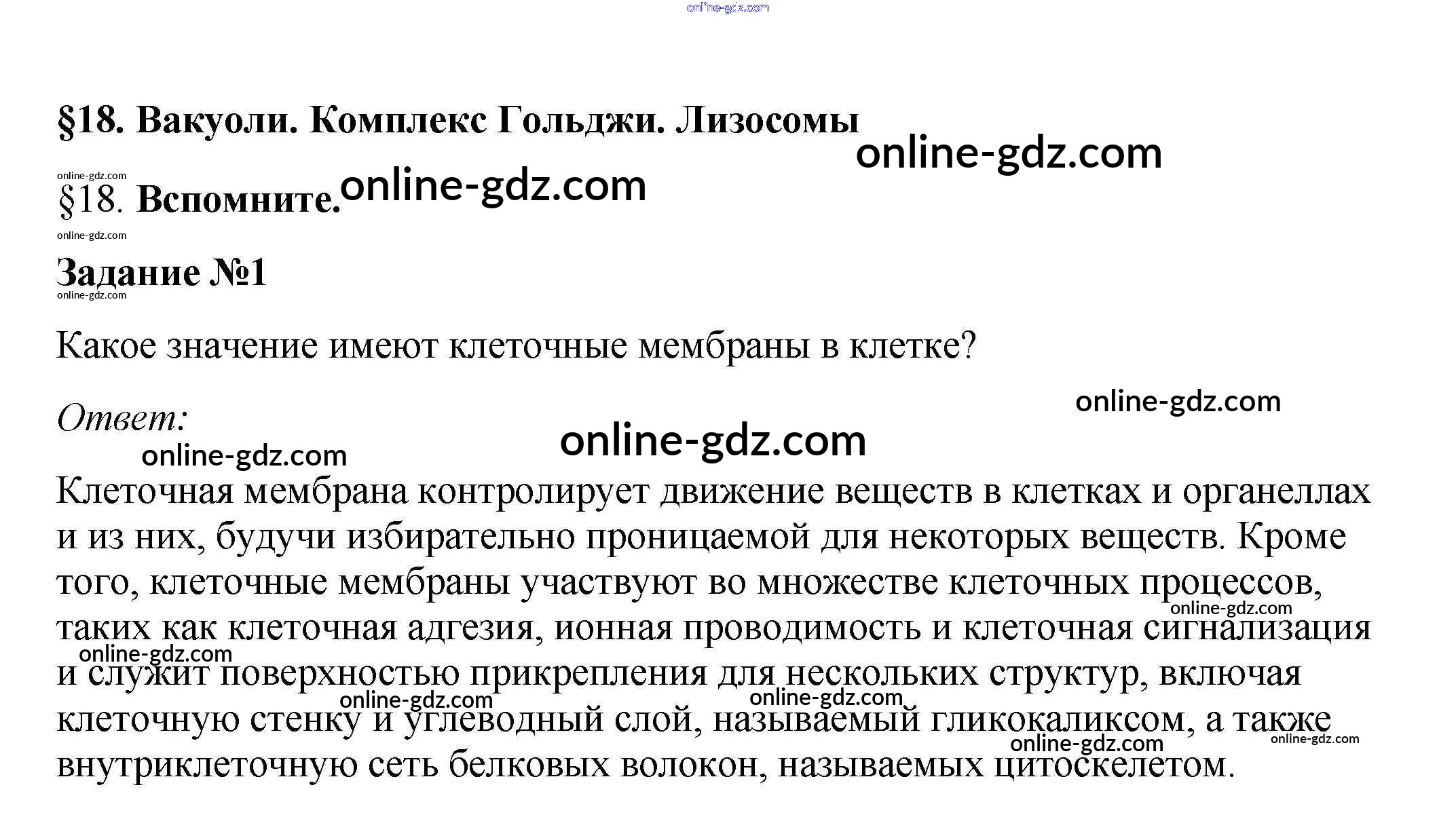 Готовые домашние задания по Биологии за 10 класс Учебник Пасечник, Каменский Линия жизни 2018 - Вспомните §18. Вакуоли. Комплекс Гольджи. Лизосомы 1