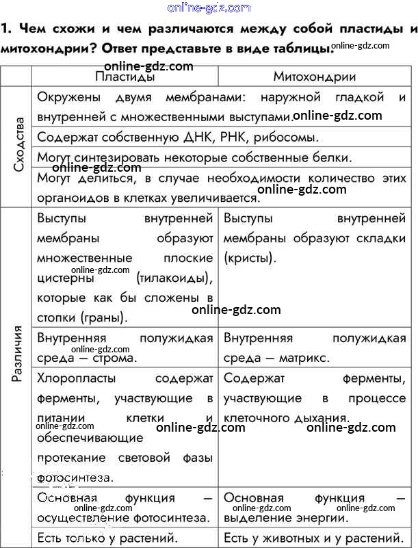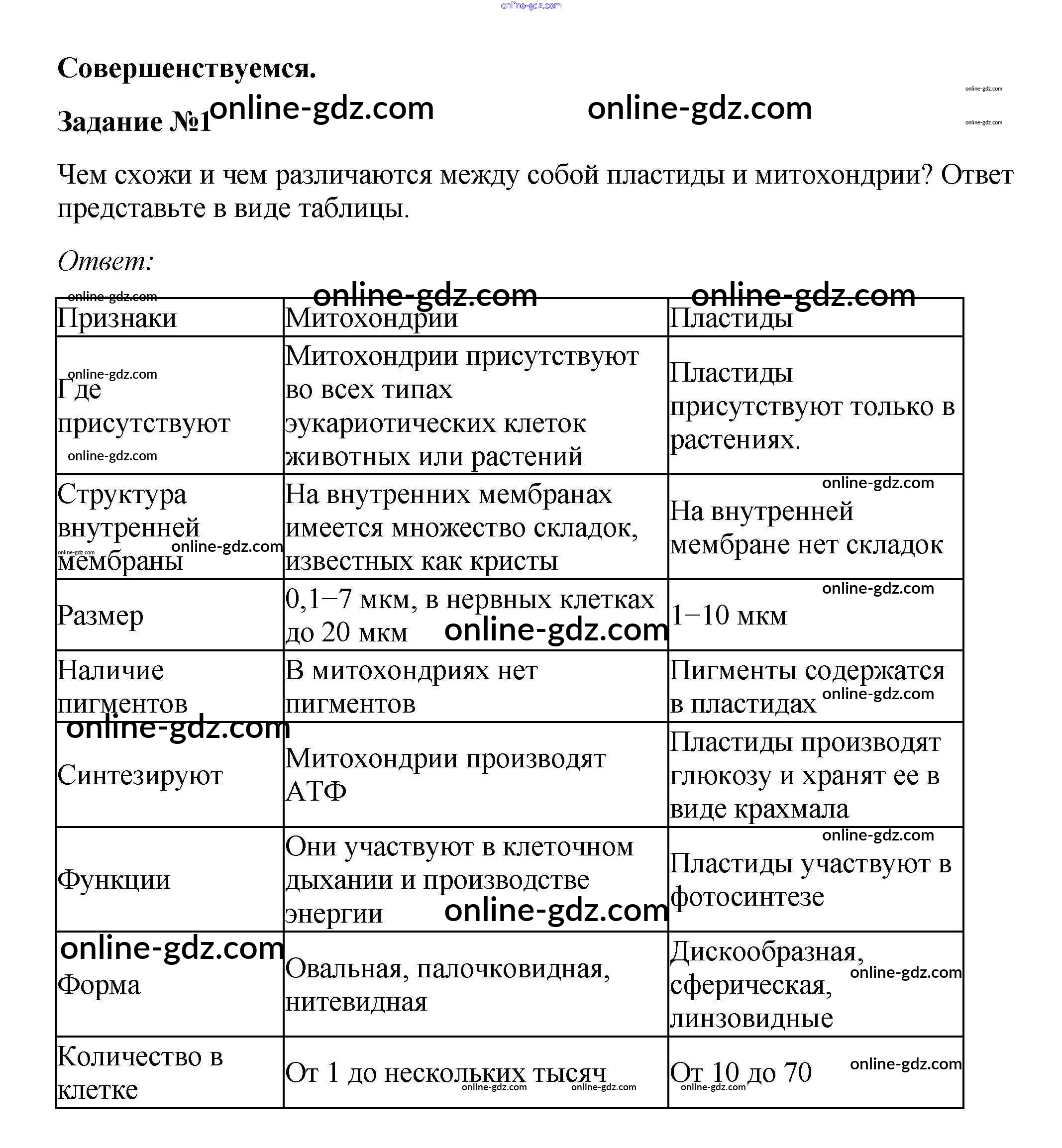 Готовые домашние задания по Биологии за 10 класс Учебник Пасечник, Каменский Линия жизни 2018 - Совершенствуемся §19. Митохондрии. Пластиды. Органоиды движения. Клеточные включения 1