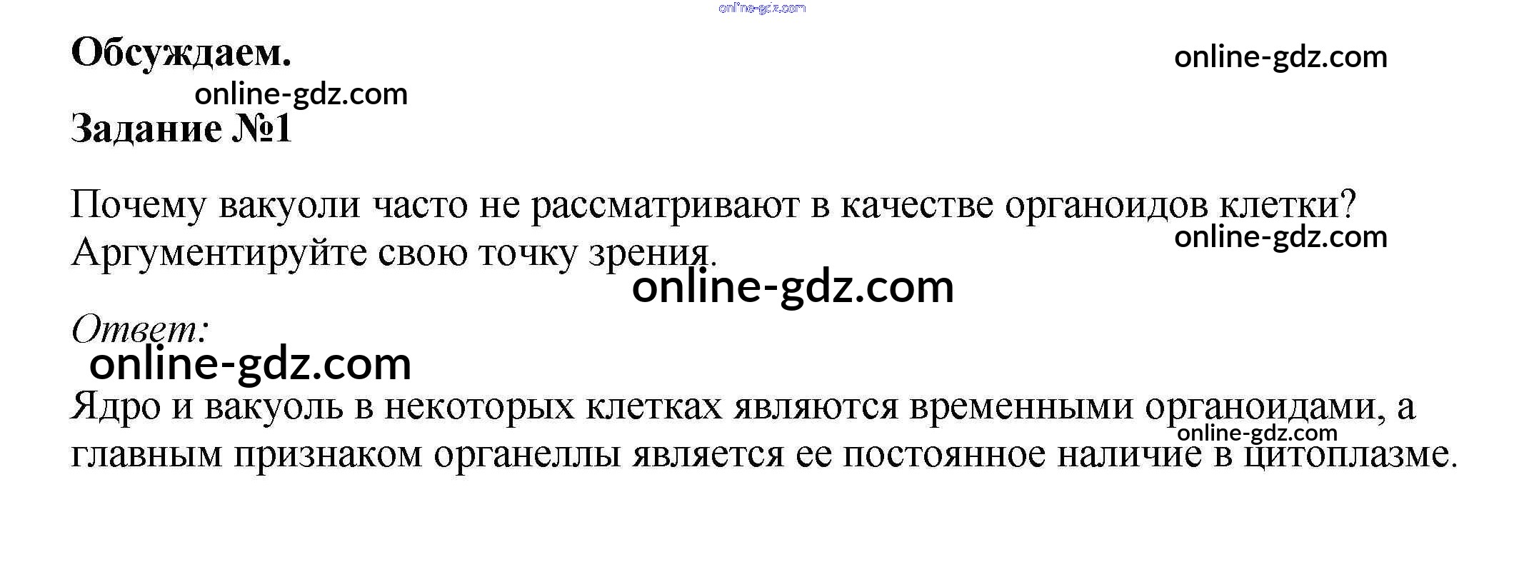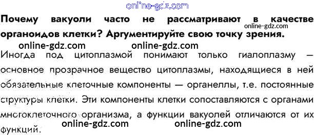 Готовые домашние задания по Биологии за 10 класс Учебник Пасечник, Каменский Линия жизни 2018 - Обсуждаем §19. Митохондрии. Пластиды. Органоиды движения. Клеточные включения 1