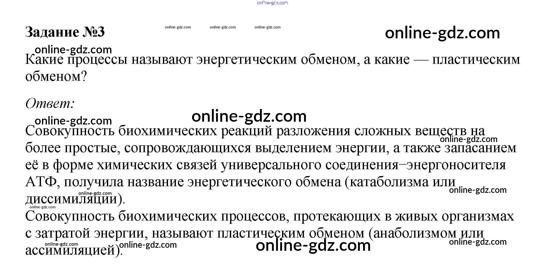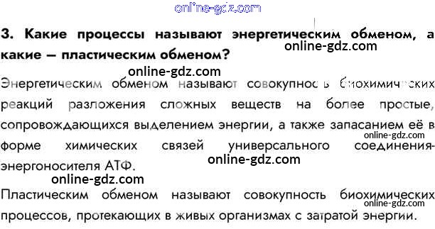 Готовые домашние задания по Биологии за 10 класс Учебник Пасечник, Каменский Линия жизни 2018 - Тренируемся §21. Обмен веществ и превращение энергии в клетке 3