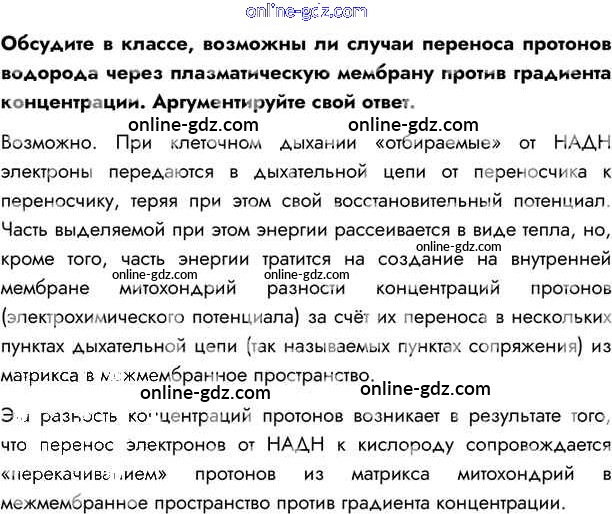 Готовые домашние задания по Биологии за 10 класс Учебник Пасечник, Каменский Линия жизни 2018 - Обсуждаем §21. Обмен веществ и превращение энергии в клетке 1
