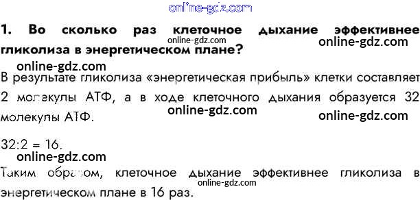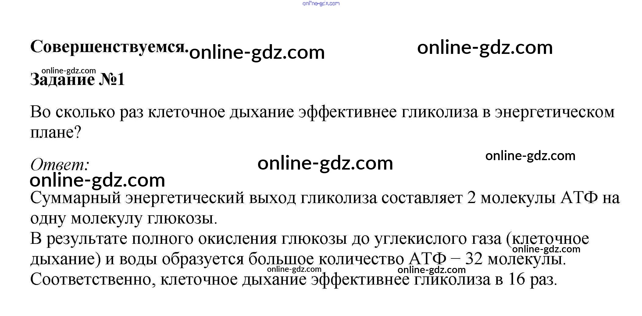 Готовые домашние задания по Биологии за 10 класс Учебник Пасечник, Каменский Линия жизни 2018 - Совершенствуемся §22. Энергетический обмен в клетке 1