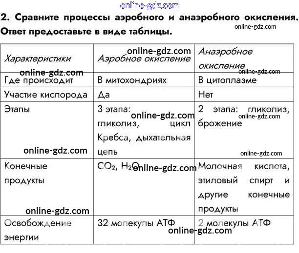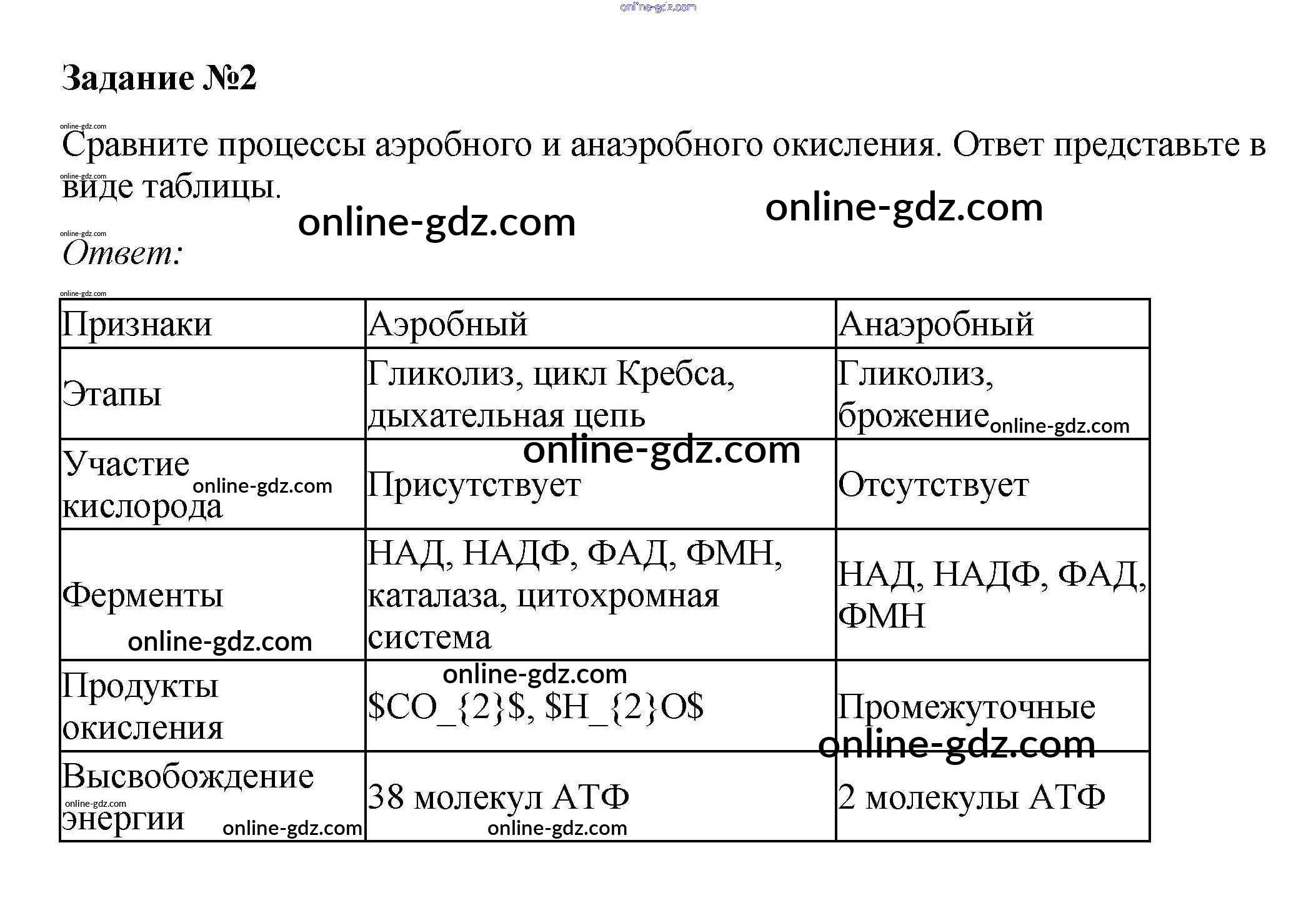 Готовые домашние задания по Биологии за 10 класс Учебник Пасечник, Каменский Линия жизни 2018 - Совершенствуемся §22. Энергетический обмен в клетке 2