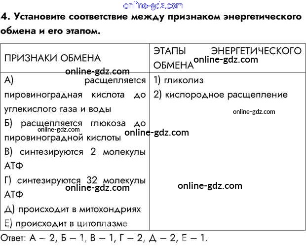 Готовые домашние задания по Биологии за 10 класс Учебник Пасечник, Каменский Линия жизни 2018 - Совершенствуемся §22. Энергетический обмен в клетке 4