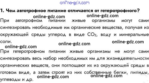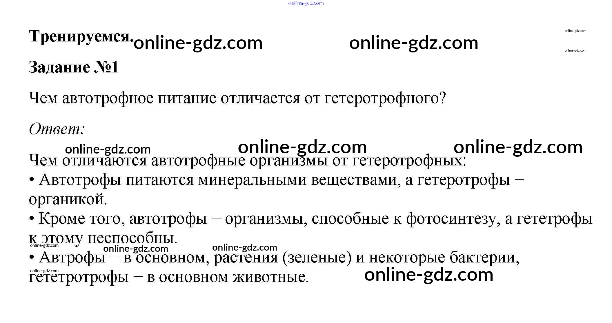 Готовые домашние задания по Биологии за 10 класс Учебник Пасечник, Каменский Линия жизни 2018 - Тренируемся §23. Типы клеточного питания. Фотосинтез и хемосинтез 1