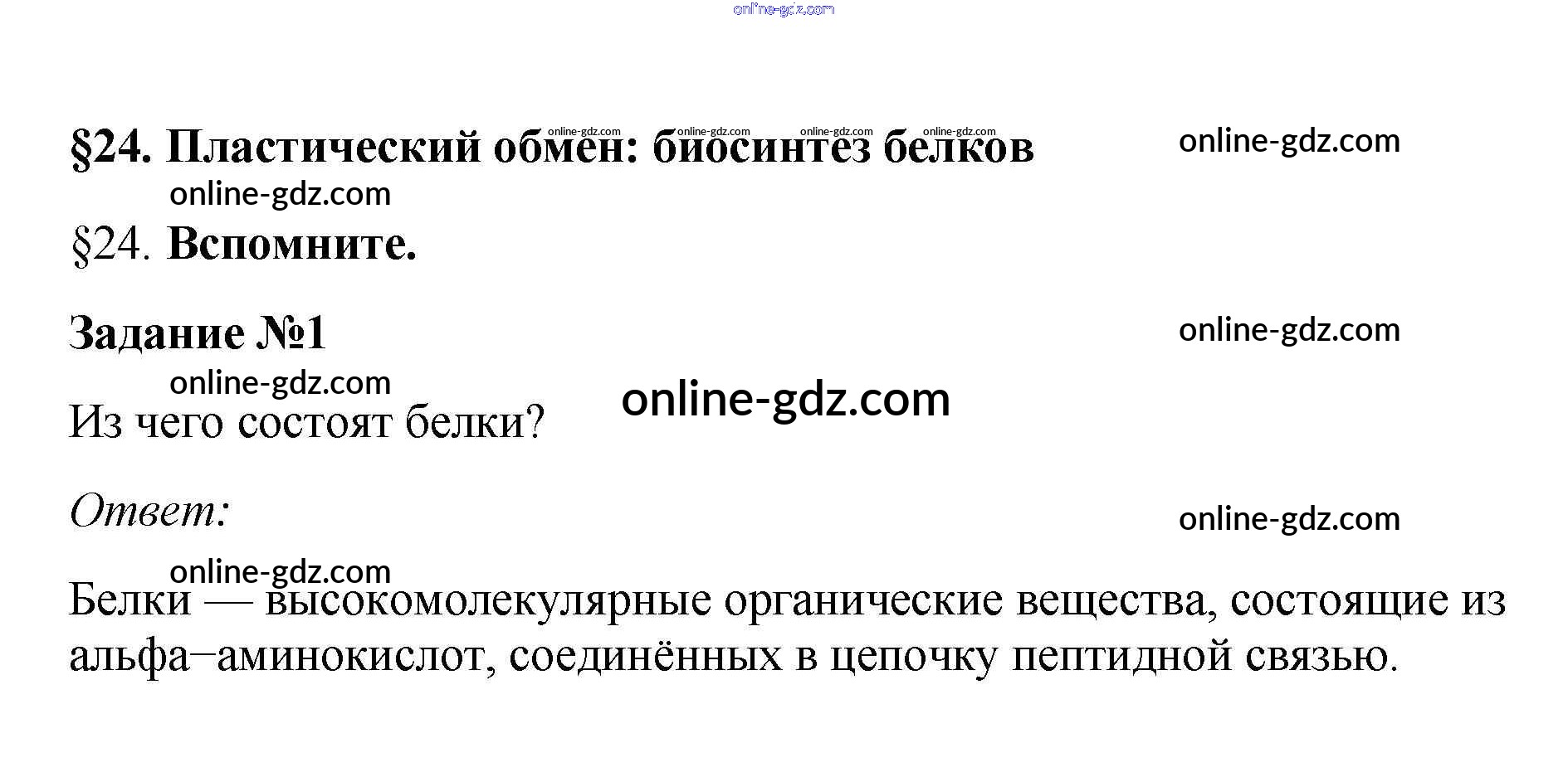 Готовые домашние задания по Биологии за 10 класс Учебник Пасечник, Каменский Линия жизни 2018 - Вспомните §24. Пластический обмен: биосинтез белков 1
