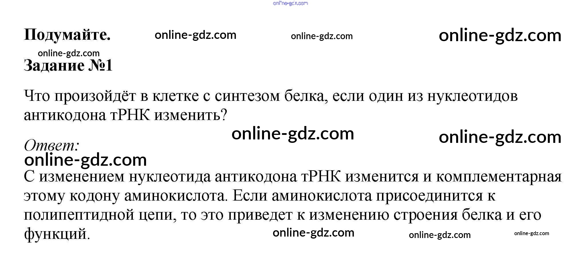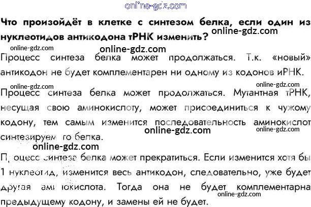 Готовые домашние задания по Биологии за 10 класс Учебник Пасечник, Каменский Линия жизни 2018 - Подумайте §24. Пластический обмен: биосинтез белков 1