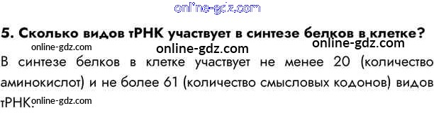 Готовые домашние задания по Биологии за 10 класс Учебник Пасечник, Каменский Линия жизни 2018 - Тренируемся §24. Пластический обмен: биосинтез белков 5