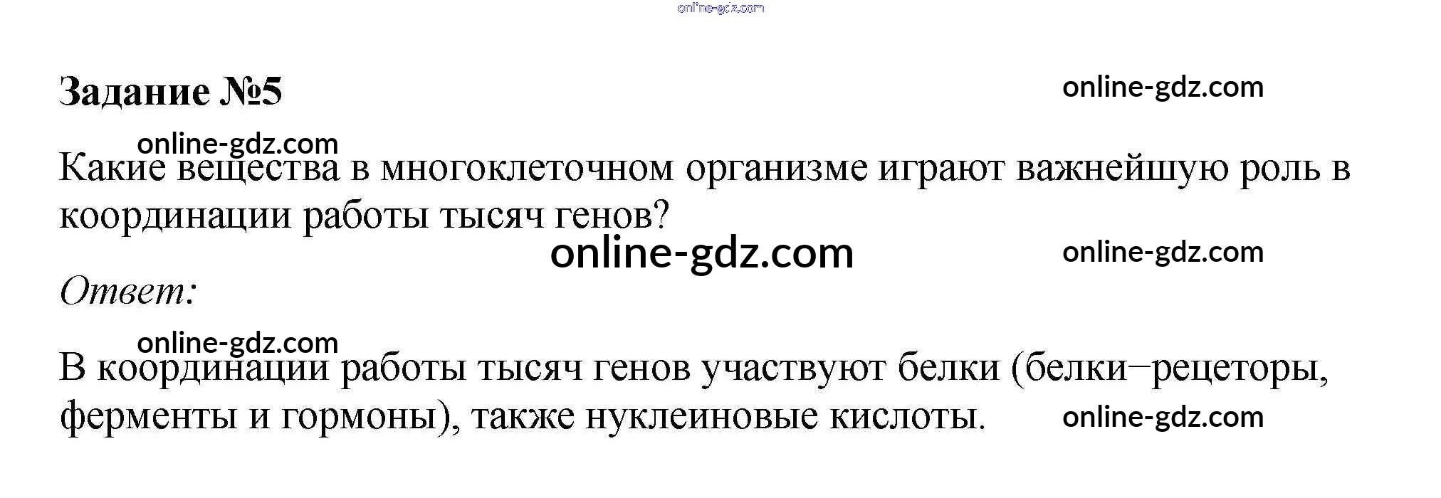 Готовые домашние задания по Биологии за 10 класс Учебник Пасечник, Каменский Линия жизни 2018 - Тренируемся §25. Регуляция транскрипции и трансляции в клетке и организме 5