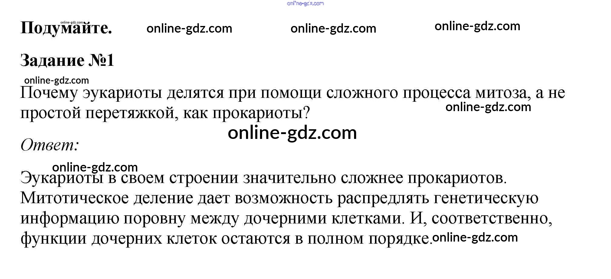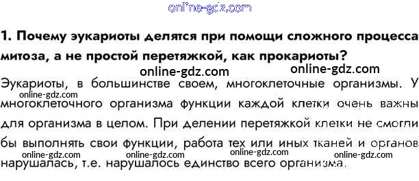 Готовые домашние задания по Биологии за 10 класс Учебник Пасечник, Каменский Линия жизни 2018 - Подумайте §26. Деление клетки. Митоз 1