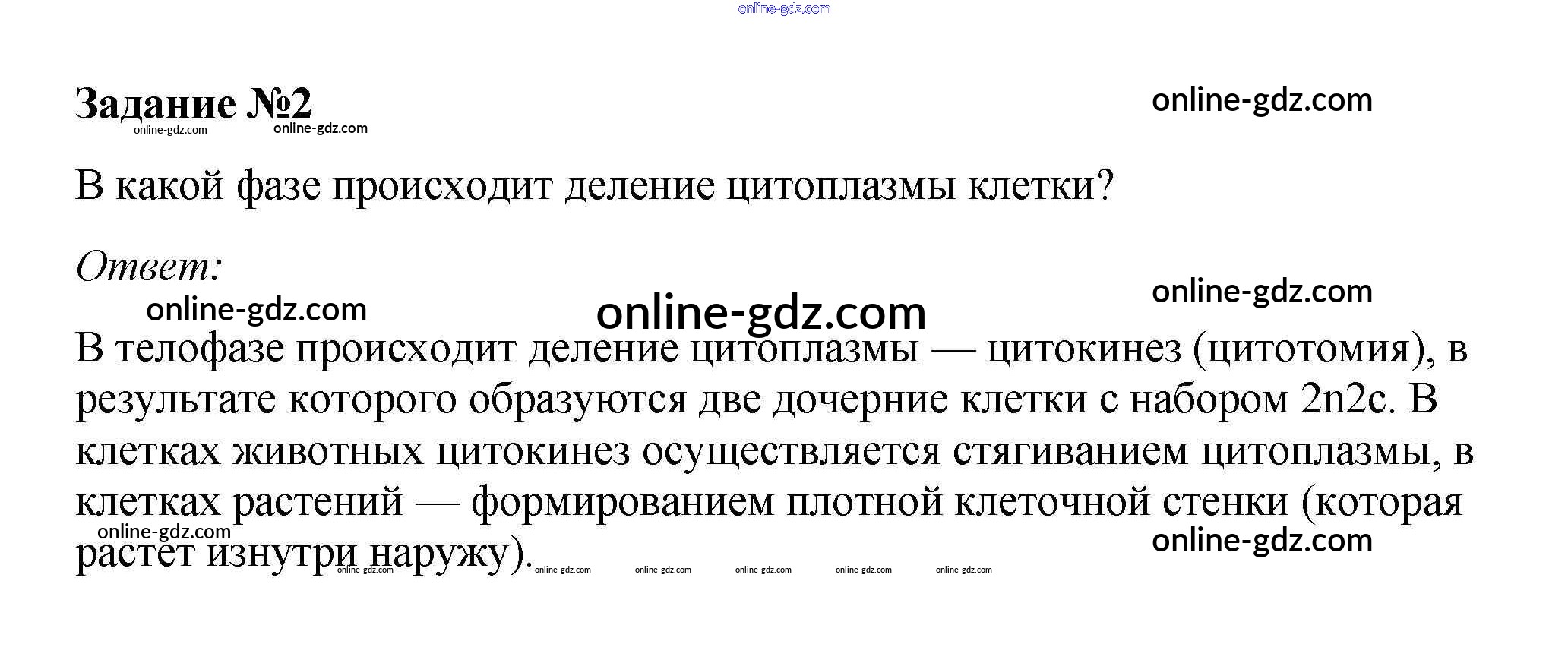 Готовые домашние задания по Биологии за 10 класс Учебник Пасечник, Каменский Линия жизни 2018 - Тренируемся §26. Деление клетки. Митоз 2