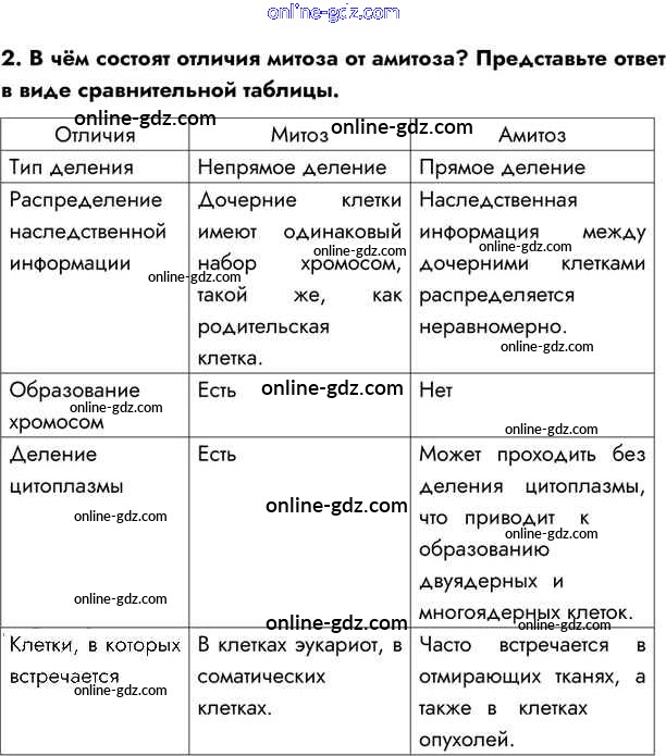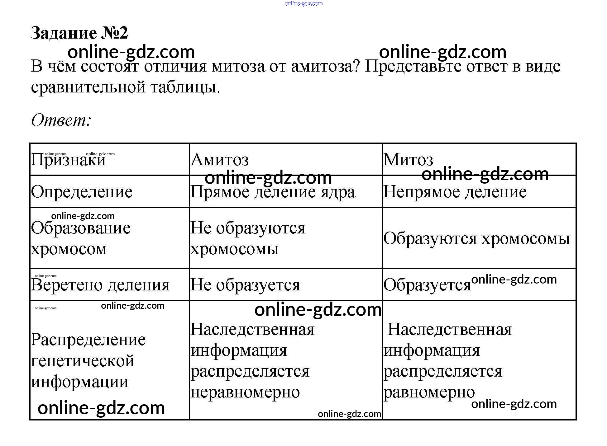 Готовые домашние задания по Биологии за 10 класс Учебник Пасечник, Каменский Линия жизни 2018 - Совершенствуемся §26. Деление клетки. Митоз 2