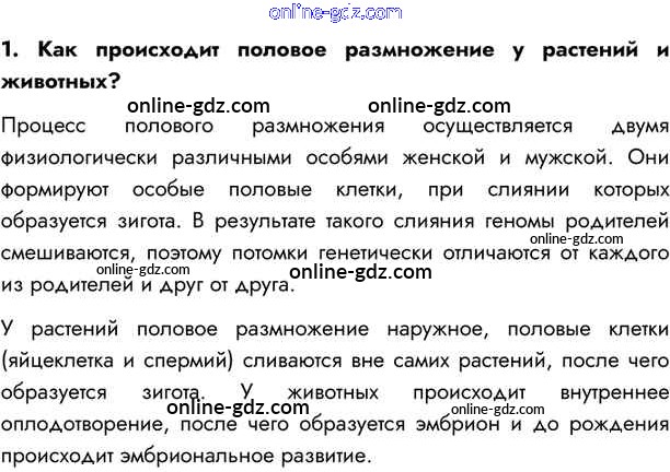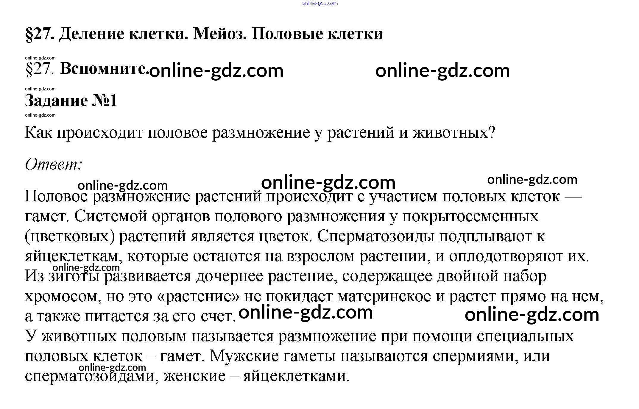 Готовые домашние задания по Биологии за 10 класс Учебник Пасечник, Каменский Линия жизни 2018 - Вспомните §27. Деление клетки. Мейоз. Половые клетки 1
