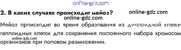 Готовые домашние задания по Биологии за 10 класс Учебник Пасечник, Каменский Линия жизни 2018 - Вспомните §27. Деление клетки. Мейоз. Половые клетки 2