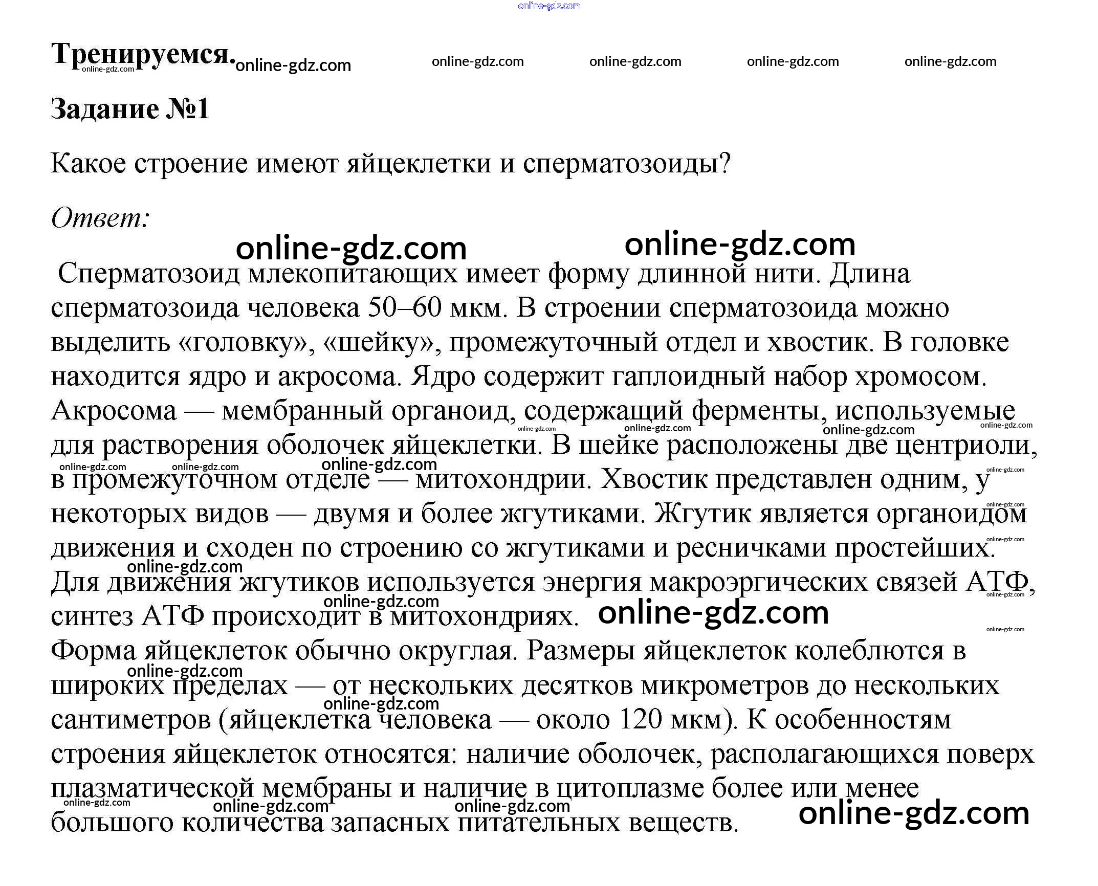 Готовые домашние задания по Биологии за 10 класс Учебник Пасечник, Каменский Линия жизни 2018 - Тренируемся §27. Деление клетки. Мейоз. Половые клетки 1