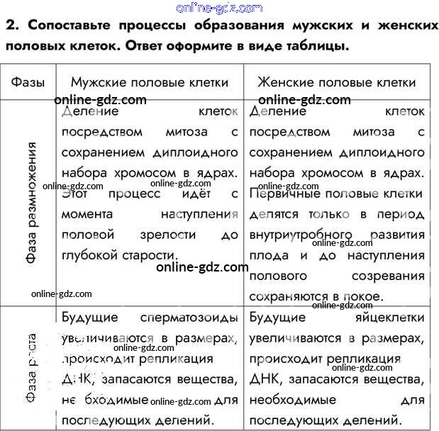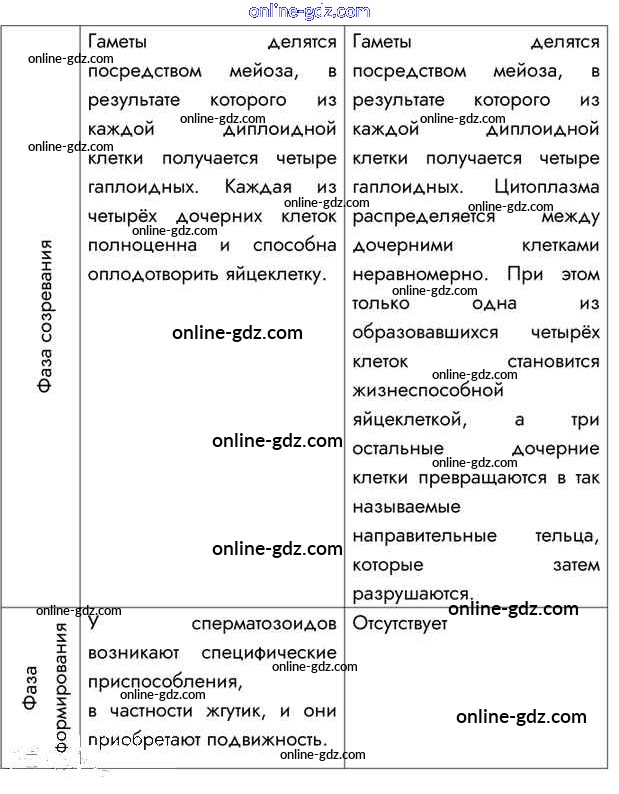 Готовые домашние задания по Биологии за 10 класс Учебник Пасечник, Каменский Линия жизни 2018 - Совершенствуемся §27. Деление клетки. Мейоз. Половые клетки 2