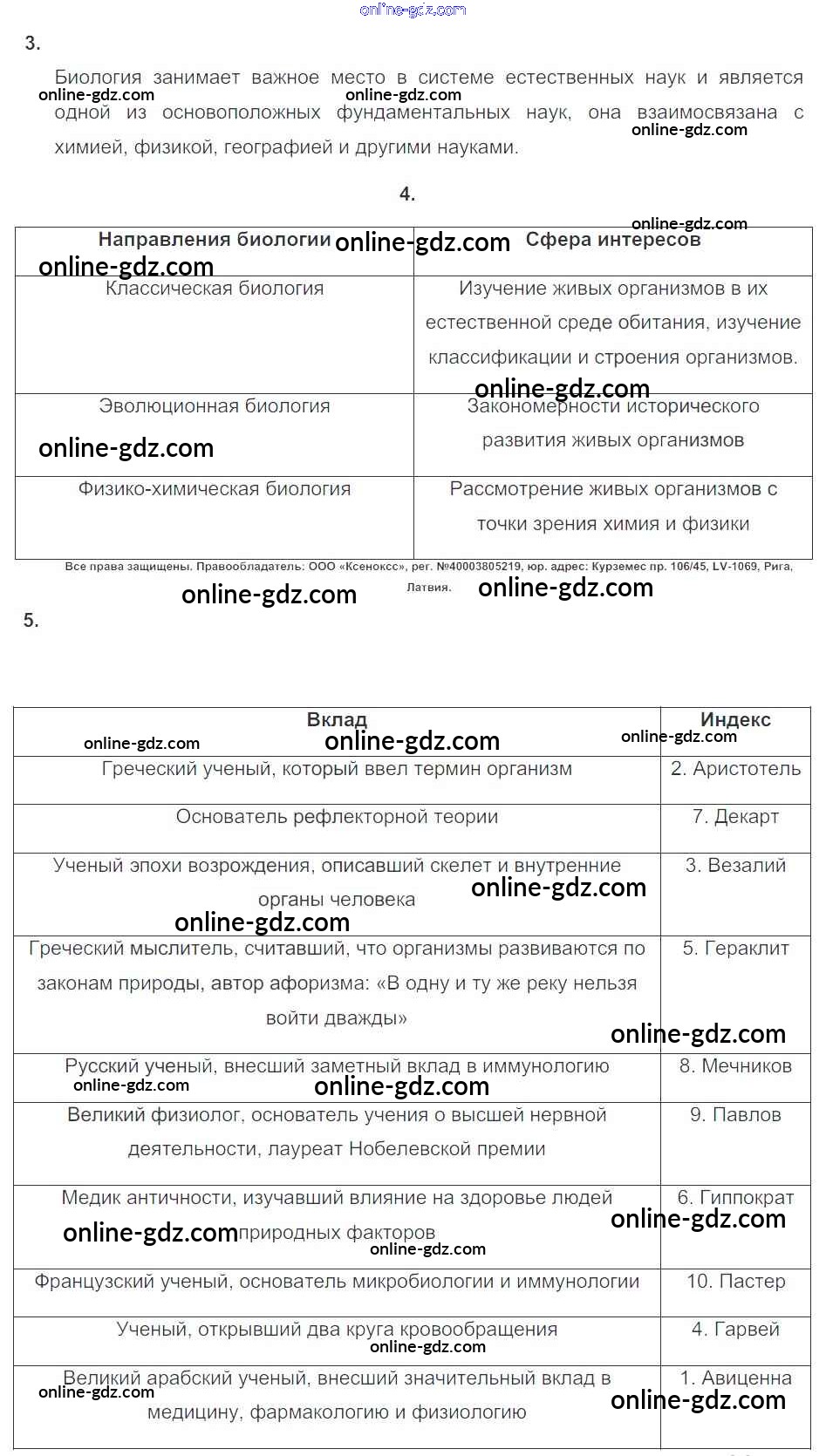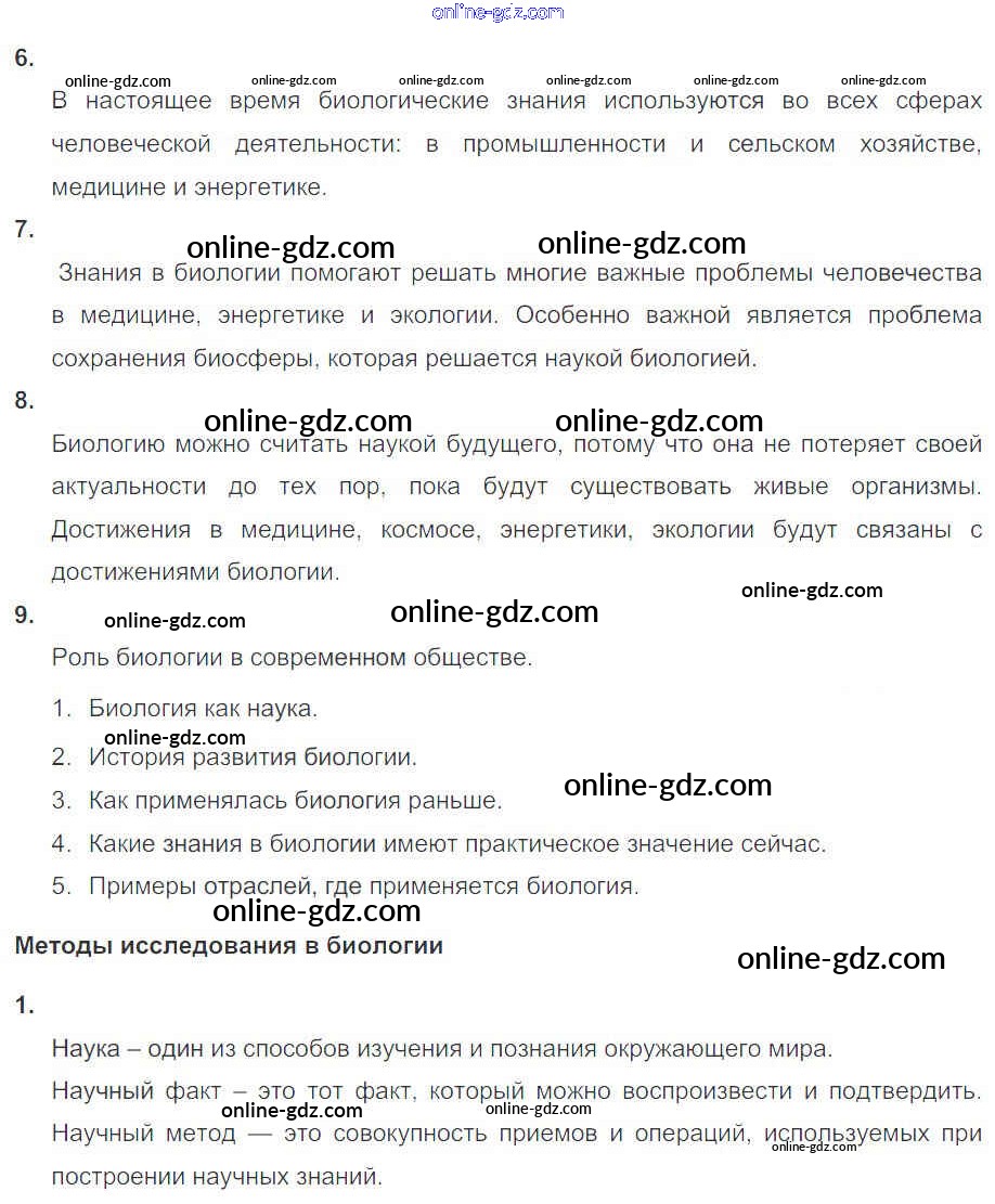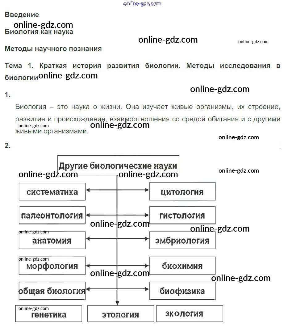Готовые домашние задания по Биологии за 10, 11 класс Рабочая тетрадь Пасечник, Швецов УМК Базовый уровень 2017 - Введение. Биология как наука. Методы научного познания Тема 1