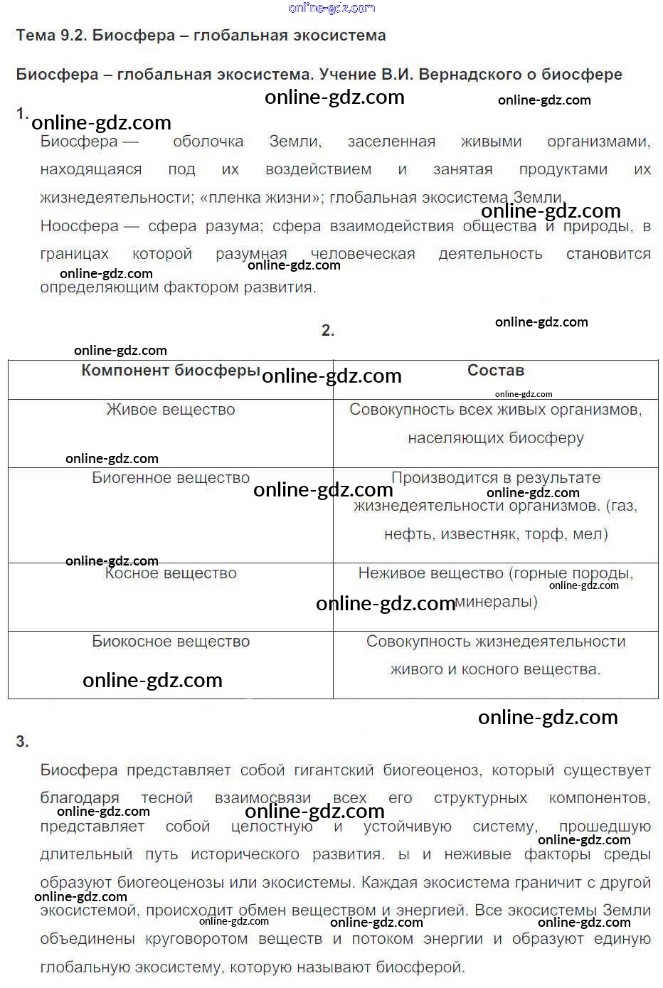 Готовые домашние задания по Биологии за 10, 11 класс Рабочая тетрадь Пасечник, Швецов УМК Базовый уровень 2017 - Глава 9. Эволюция биосферы и человек Тема 2