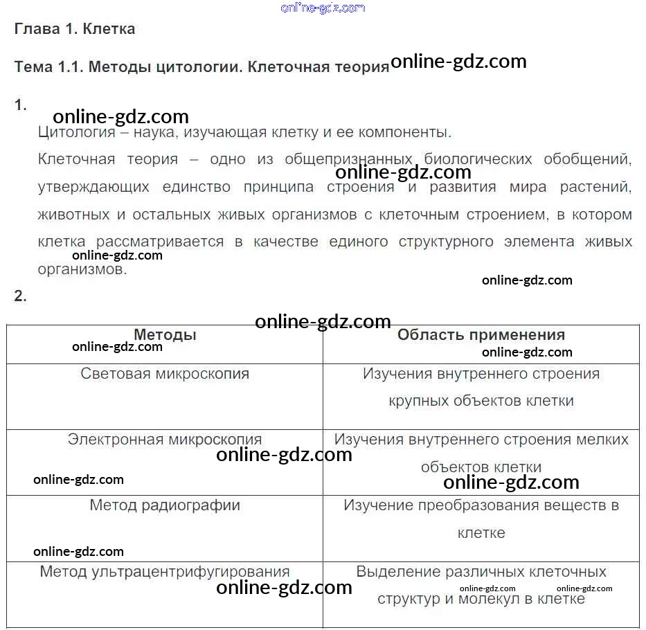 Готовые домашние задания по Биологии за 10, 11 класс Рабочая тетрадь Пасечник, Швецов УМК Базовый уровень 2017 - Глава 1. Клетка Тема 1