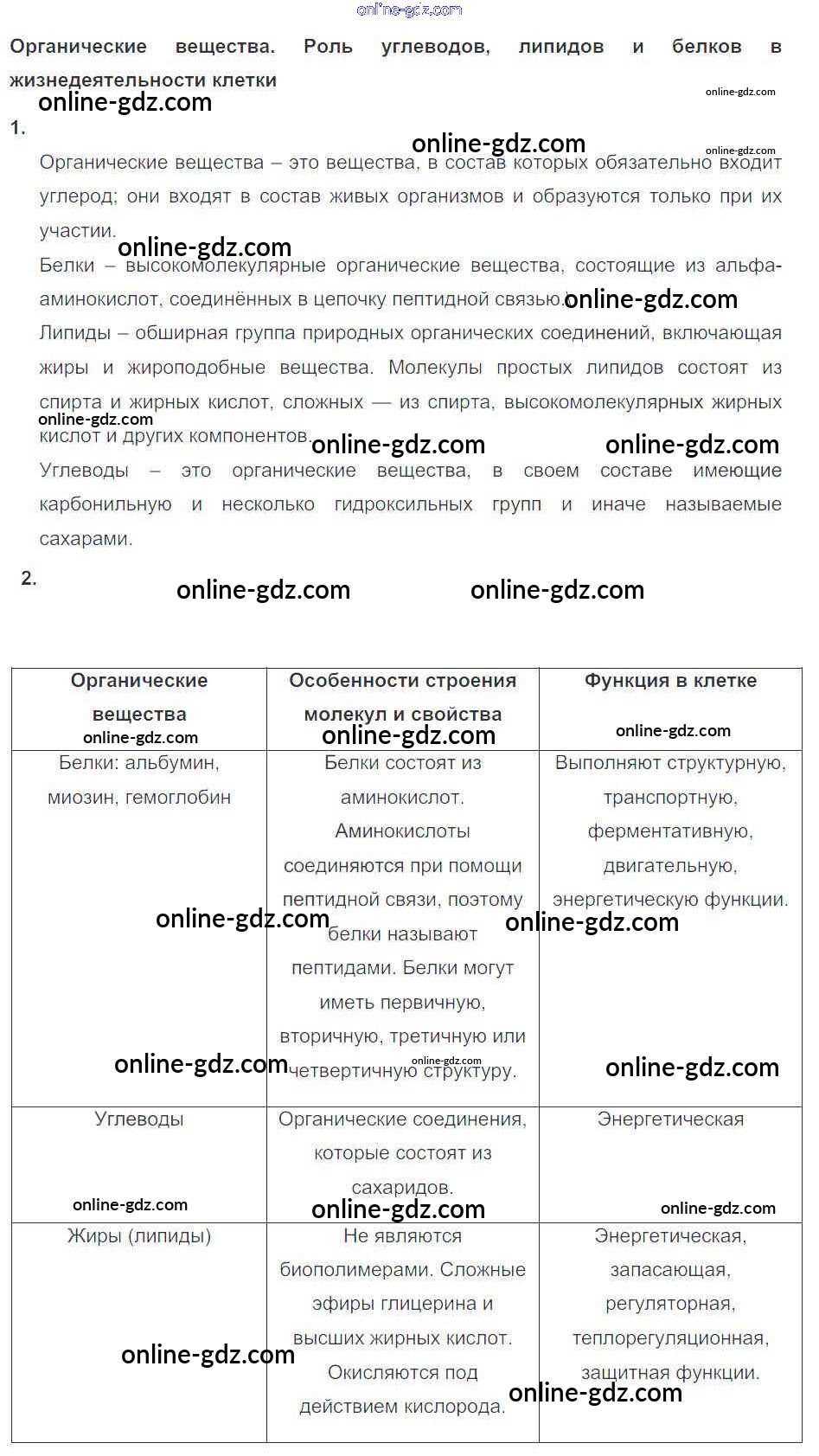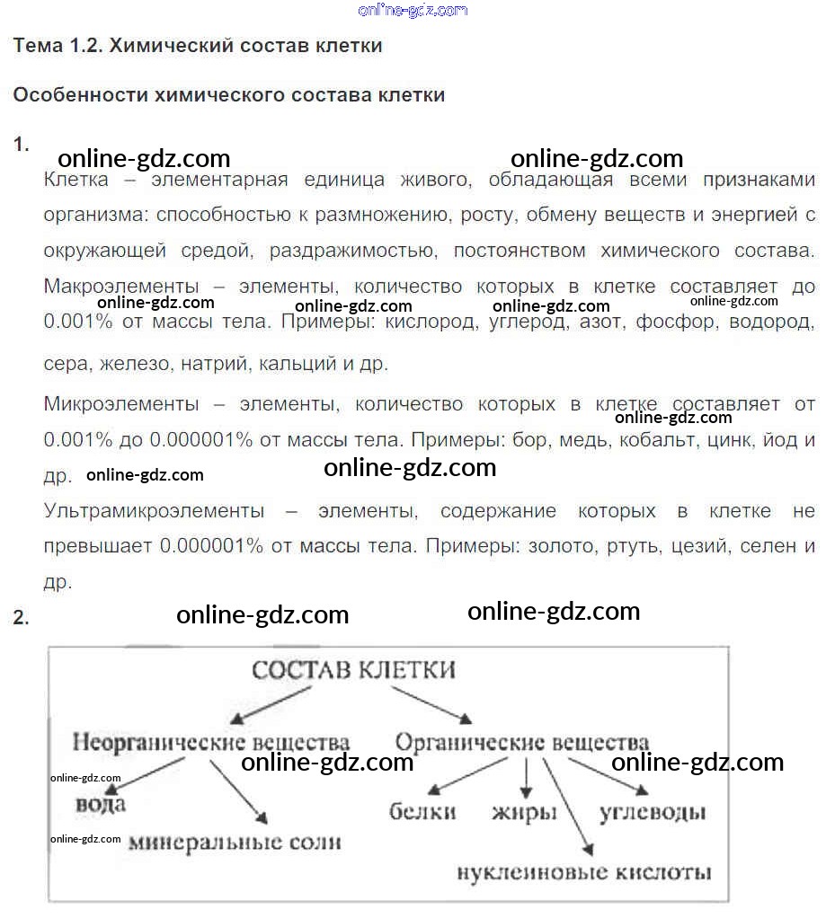 Готовые домашние задания по Биологии за 10, 11 класс Рабочая тетрадь Пасечник, Швецов УМК Базовый уровень 2017 - Глава 1. Клетка Тема 2