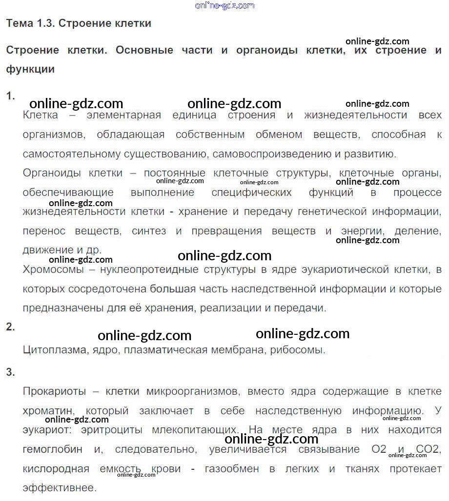 Готовые домашние задания по Биологии за 10, 11 класс Рабочая тетрадь Пасечник, Швецов УМК Базовый уровень 2017 - Глава 1. Клетка Тема 3