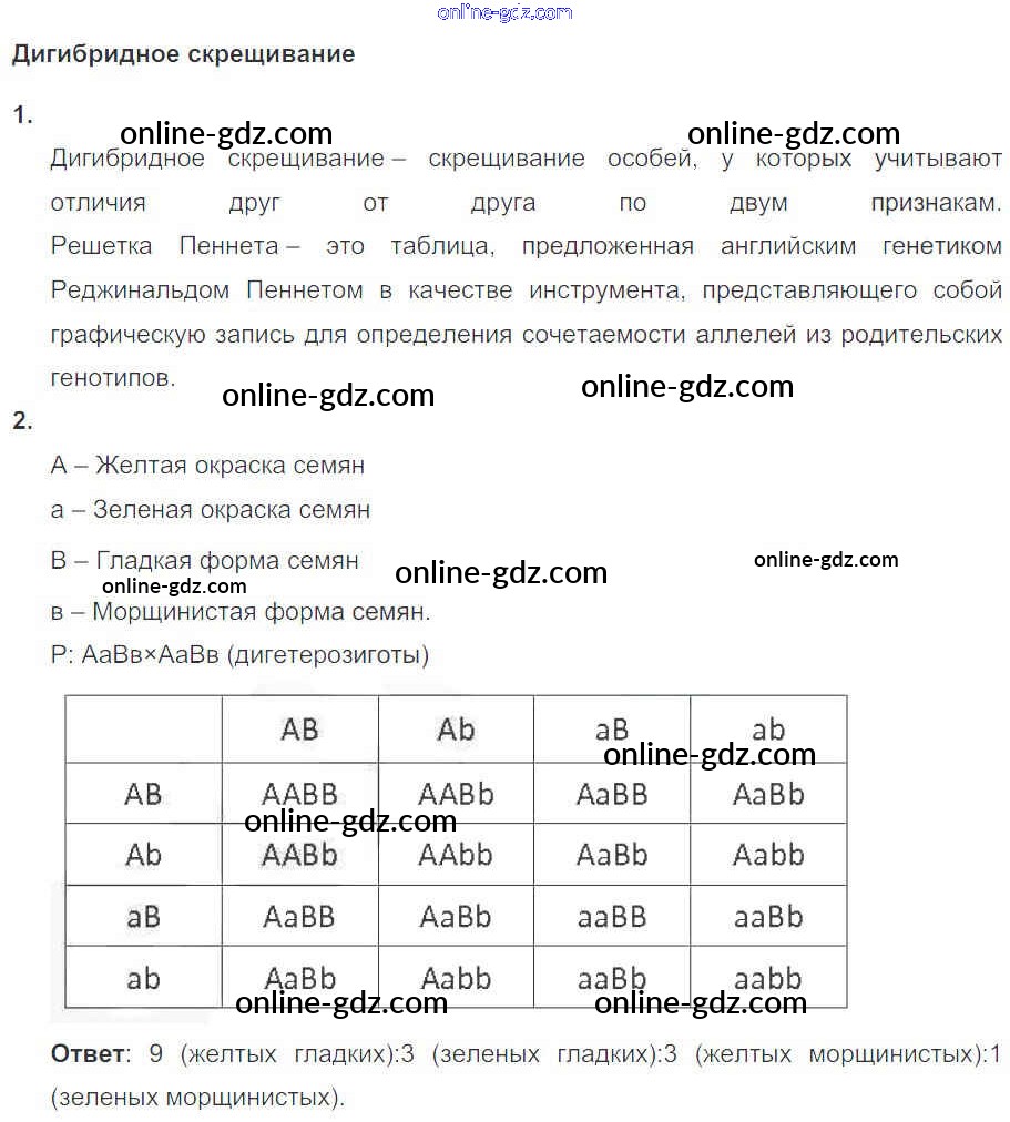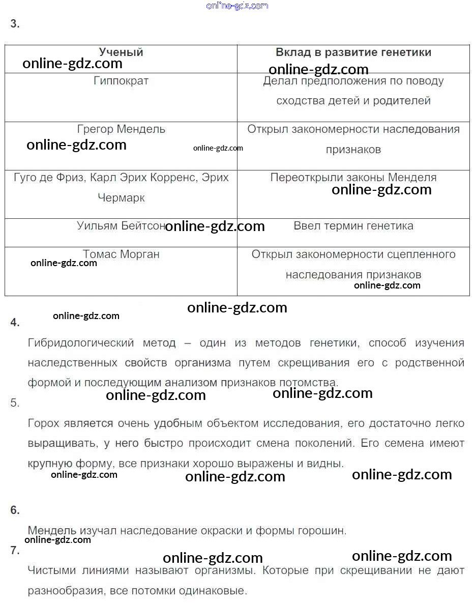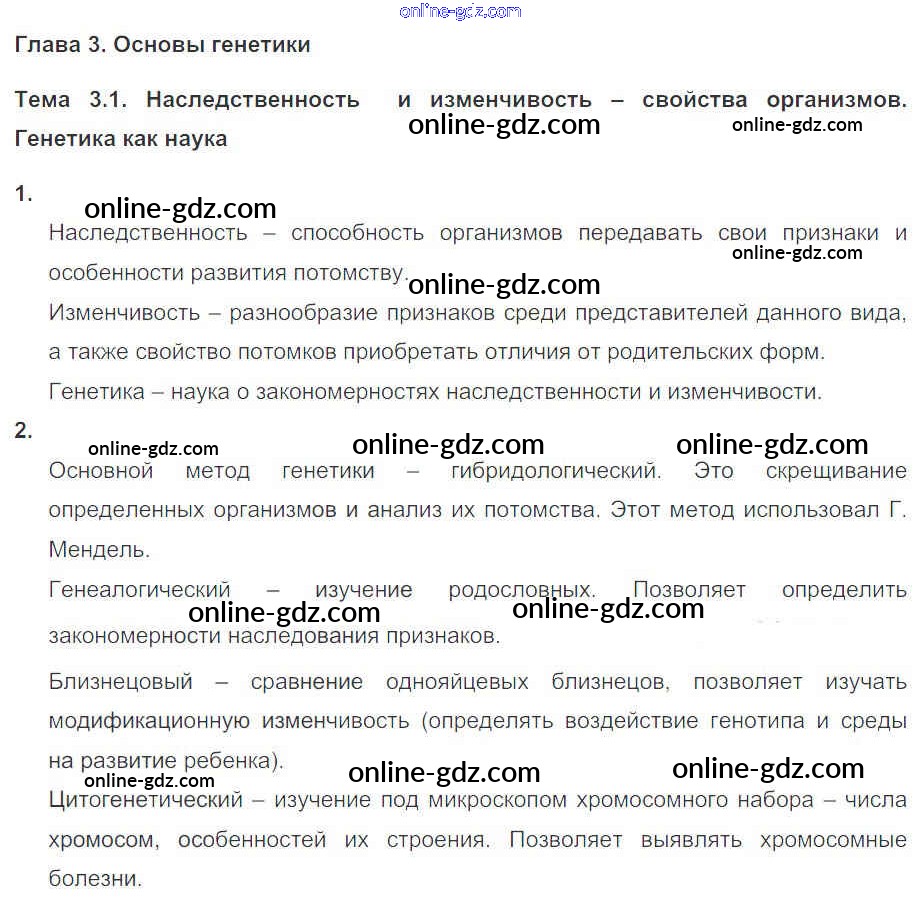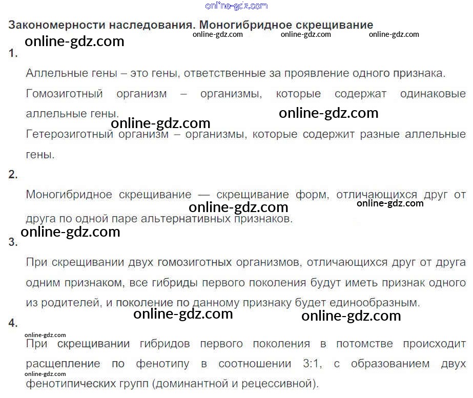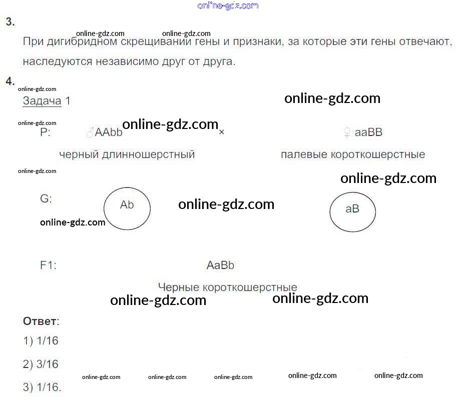 Готовые домашние задания по Биологии за 10, 11 класс Рабочая тетрадь Пасечник, Швецов УМК Базовый уровень 2017 - Глава 3. Основы генетики Тема 1