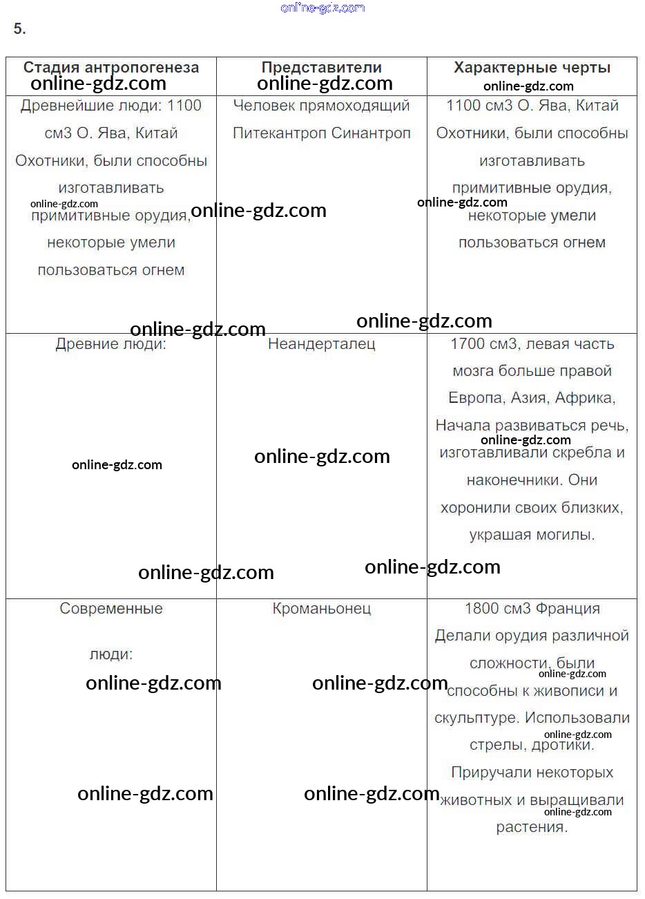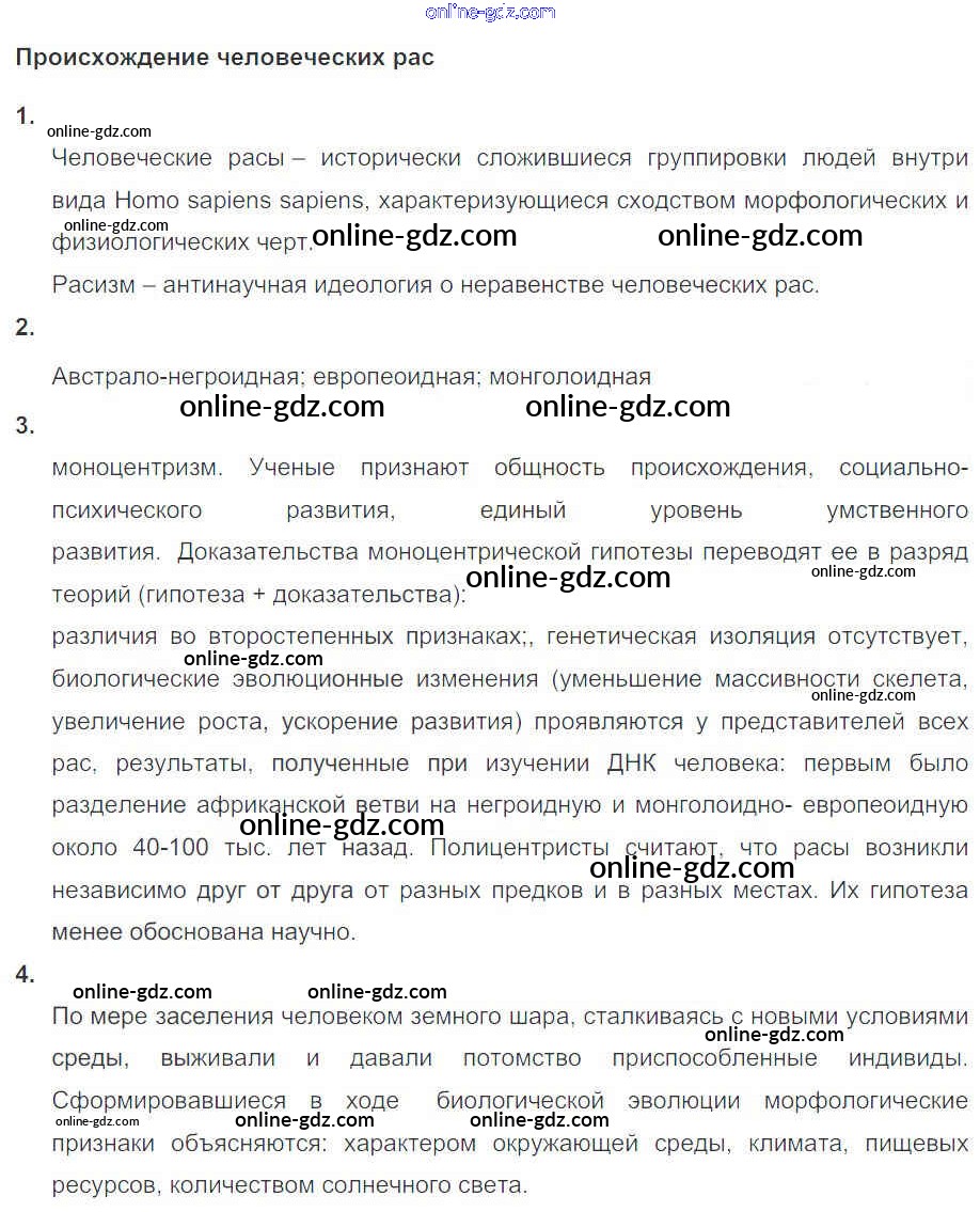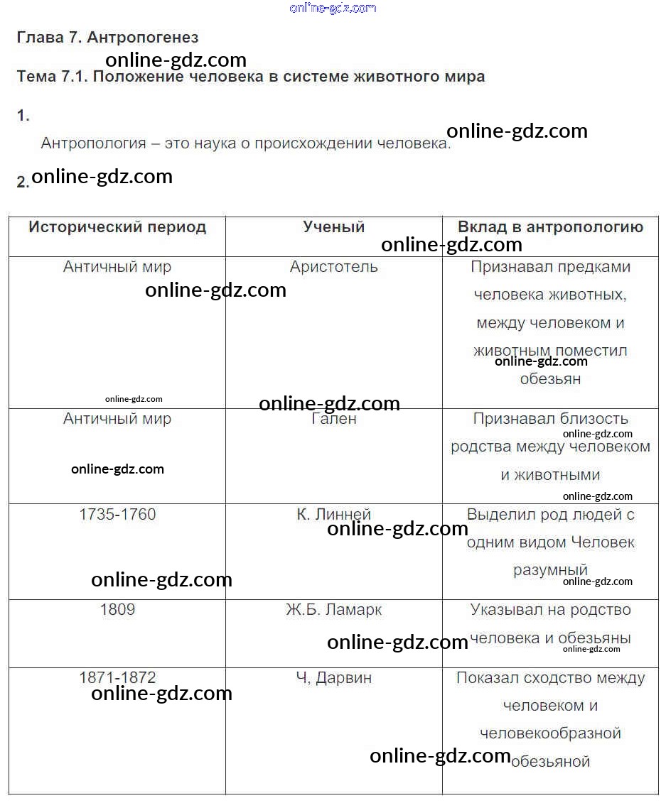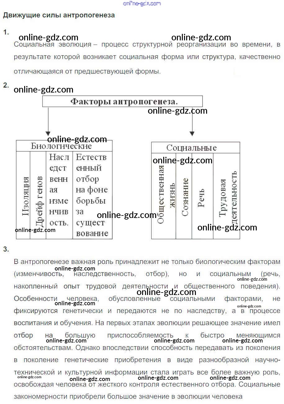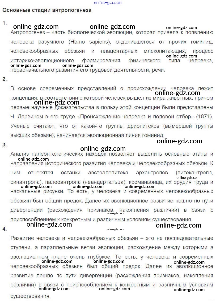 Готовые домашние задания по Биологии за 10, 11 класс Рабочая тетрадь Пасечник, Швецов УМК Базовый уровень 2017 - Глава 7. Антропогенез Тема 1