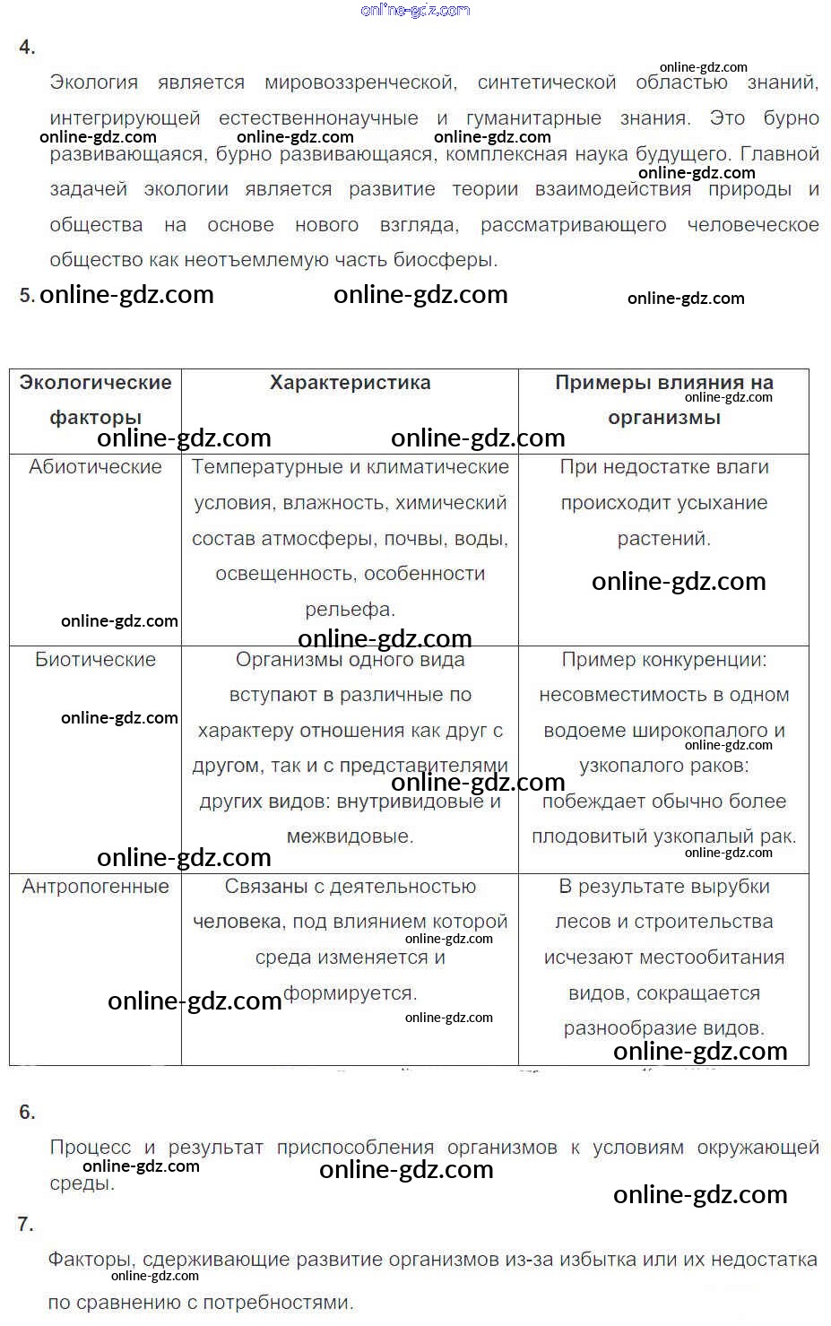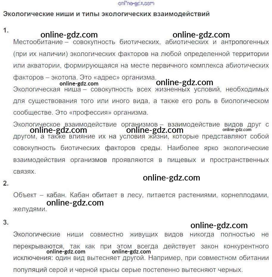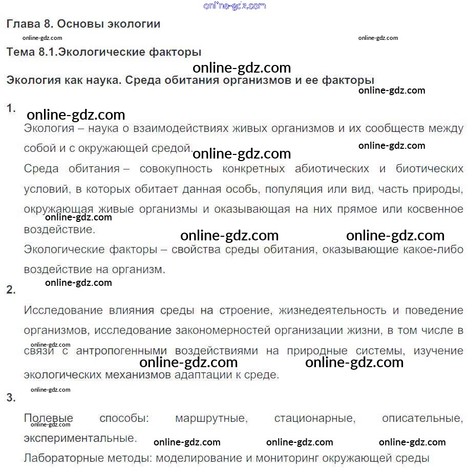 Готовые домашние задания по Биологии за 10, 11 класс Рабочая тетрадь Пасечник, Швецов УМК Базовый уровень 2017 - Глава 8. Основы экологии Тема 1