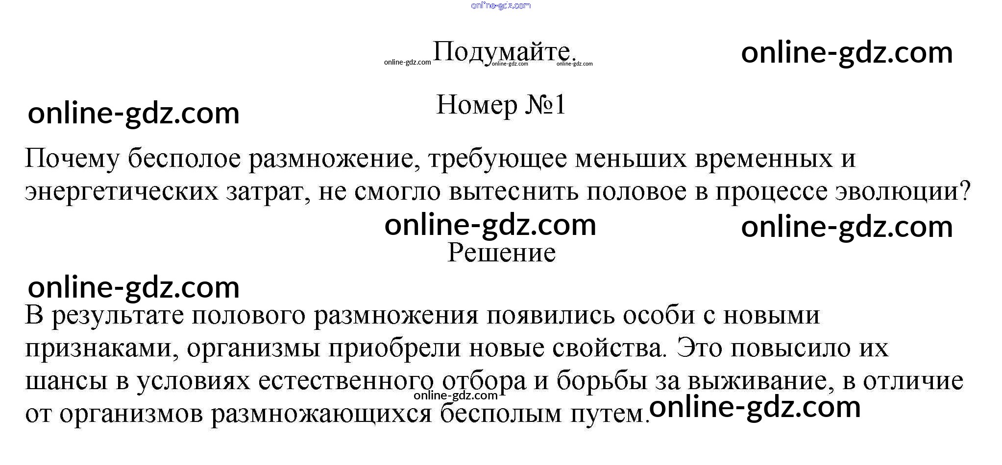 Готовые домашние задания по Биологии за 11 класс Учебник Пасечник, Каменский Линия жизни Базовый уровень 2018 - Подумайте §1. Организменный уровень: общая характеристика. Размножение организмов 1