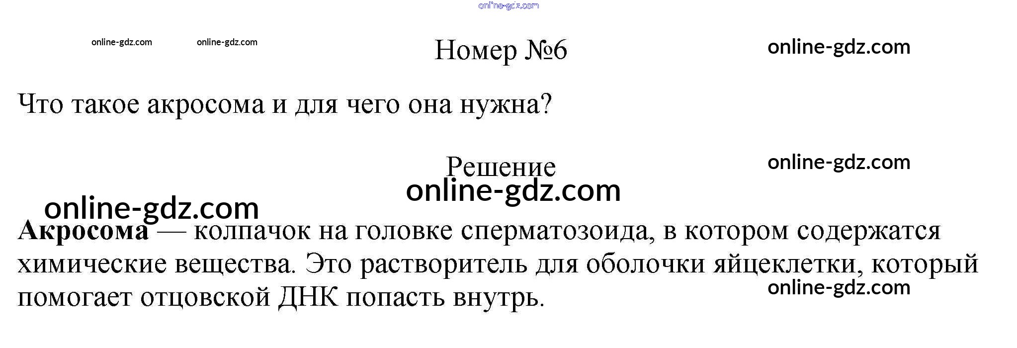 Готовые домашние задания по Биологии за 11 класс Учебник Пасечник, Каменский Линия жизни Базовый уровень 2018 - Тренируемся §2. Развитие половых клеток. Оплодотворение 6