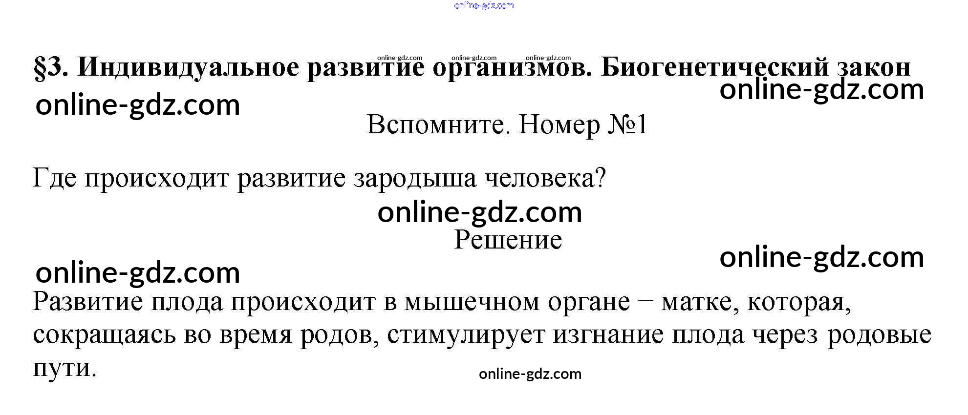 Готовые домашние задания по Биологии за 11 класс Учебник Пасечник, Каменский Линия жизни Базовый уровень 2018 - Вспомните §3. Индивидуальные развитие организмов. Биогенетический закон 1