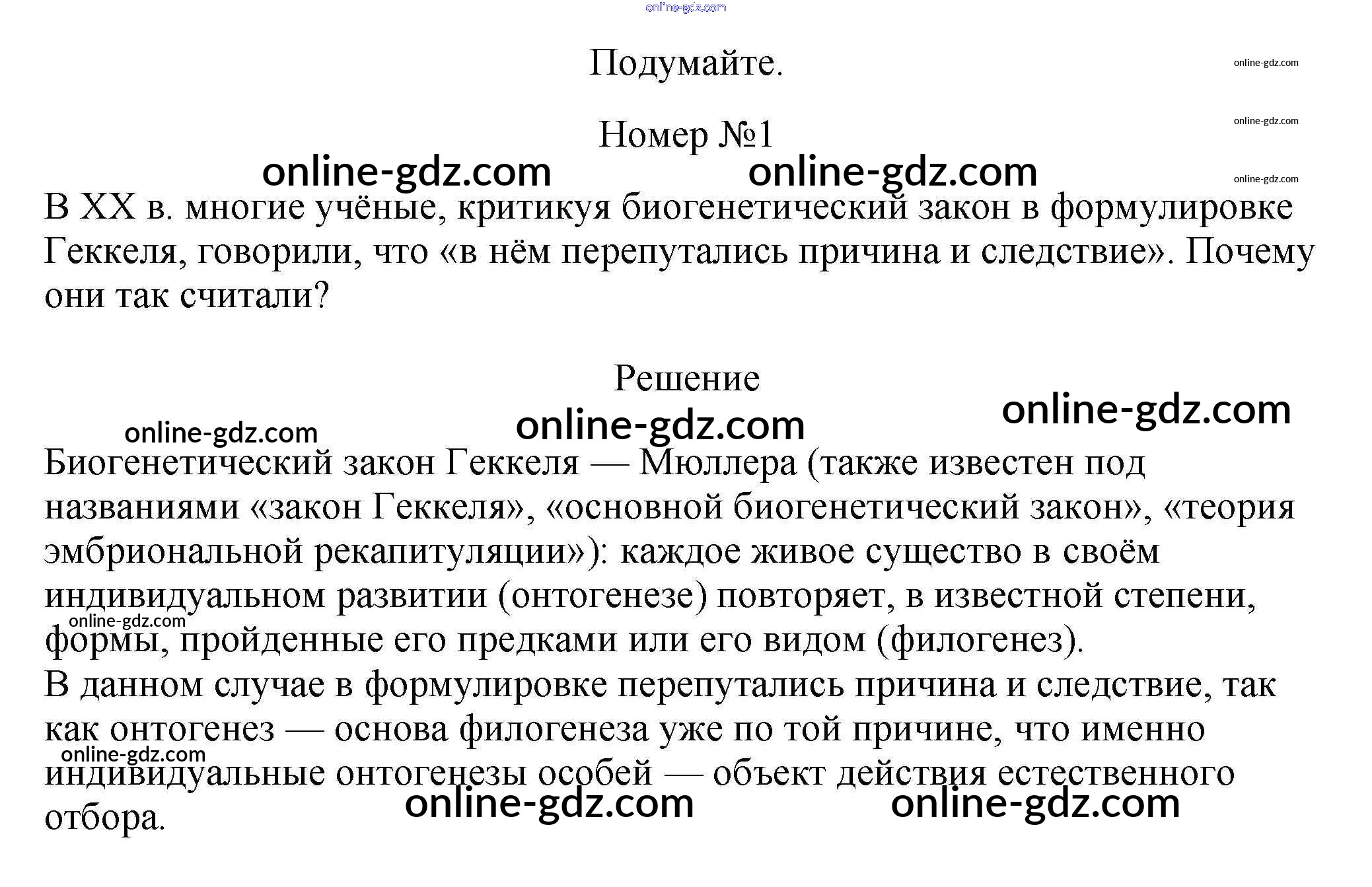 Готовые домашние задания по Биологии за 11 класс Учебник Пасечник, Каменский Линия жизни Базовый уровень 2018 - Подумайте §3. Индивидуальные развитие организмов. Биогенетический закон 1