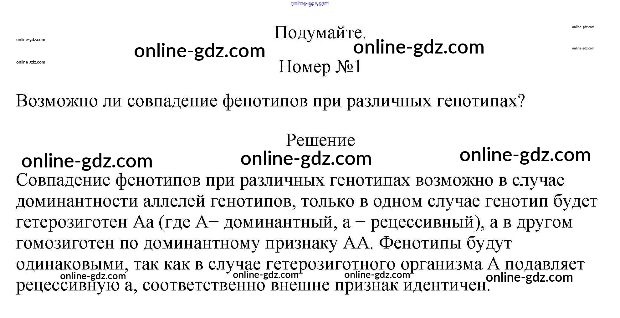 Готовые домашние задания по Биологии за 11 класс Учебник Пасечник, Каменский Линия жизни Базовый уровень 2018 - Подумайте §4. Закономерности наследования признаков. Моногибридное скрещивание 1