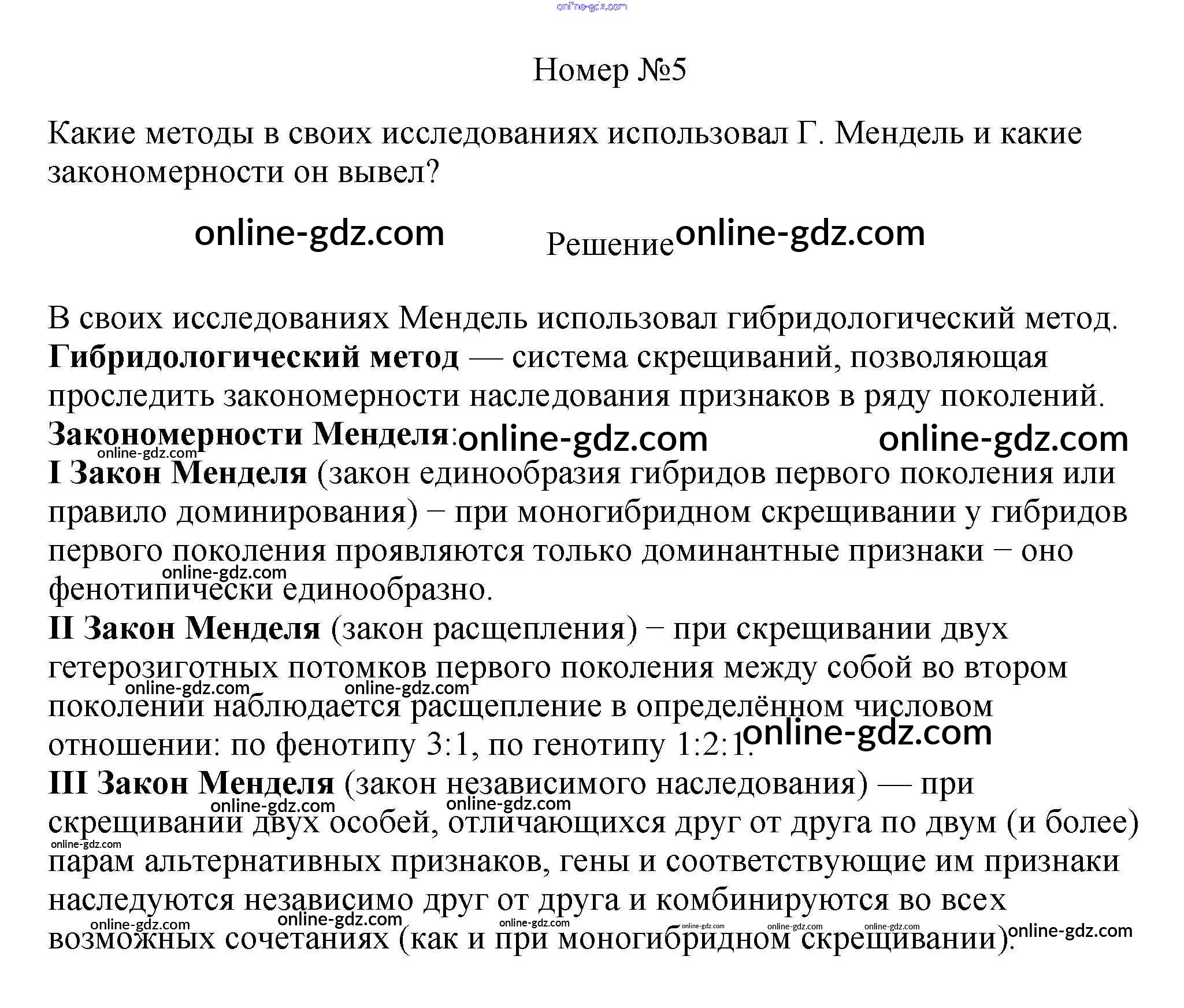 Готовые домашние задания по Биологии за 11 класс Учебник Пасечник, Каменский Линия жизни Базовый уровень 2018 - Тренируемся §4. Закономерности наследования признаков. Моногибридное скрещивание 5