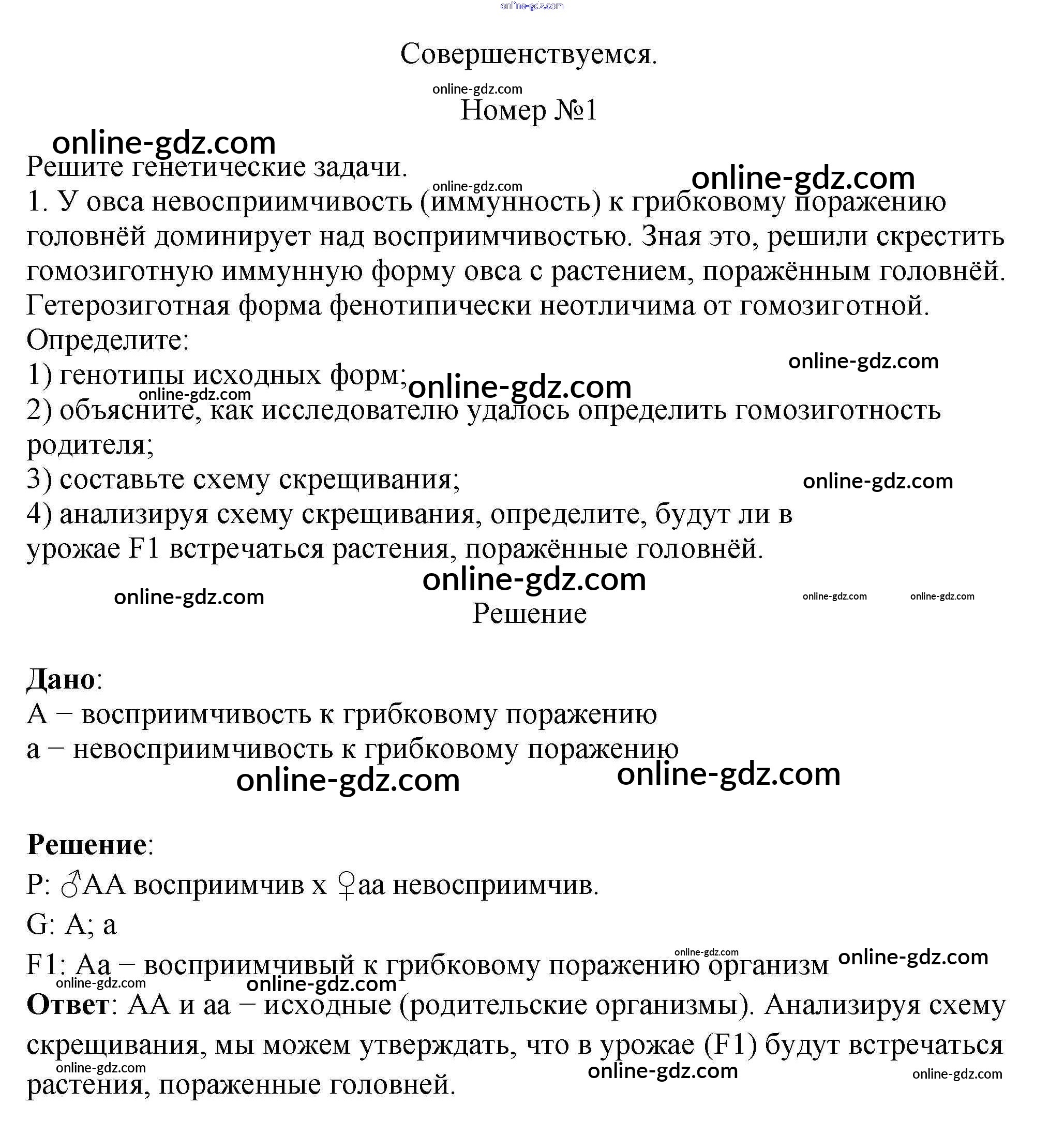 Готовые домашние задания по Биологии за 11 класс Учебник Пасечник, Каменский Линия жизни Базовый уровень 2018 - Совершенствуемся §5. Неполное доминирование. Анализирующее скрещивание 1