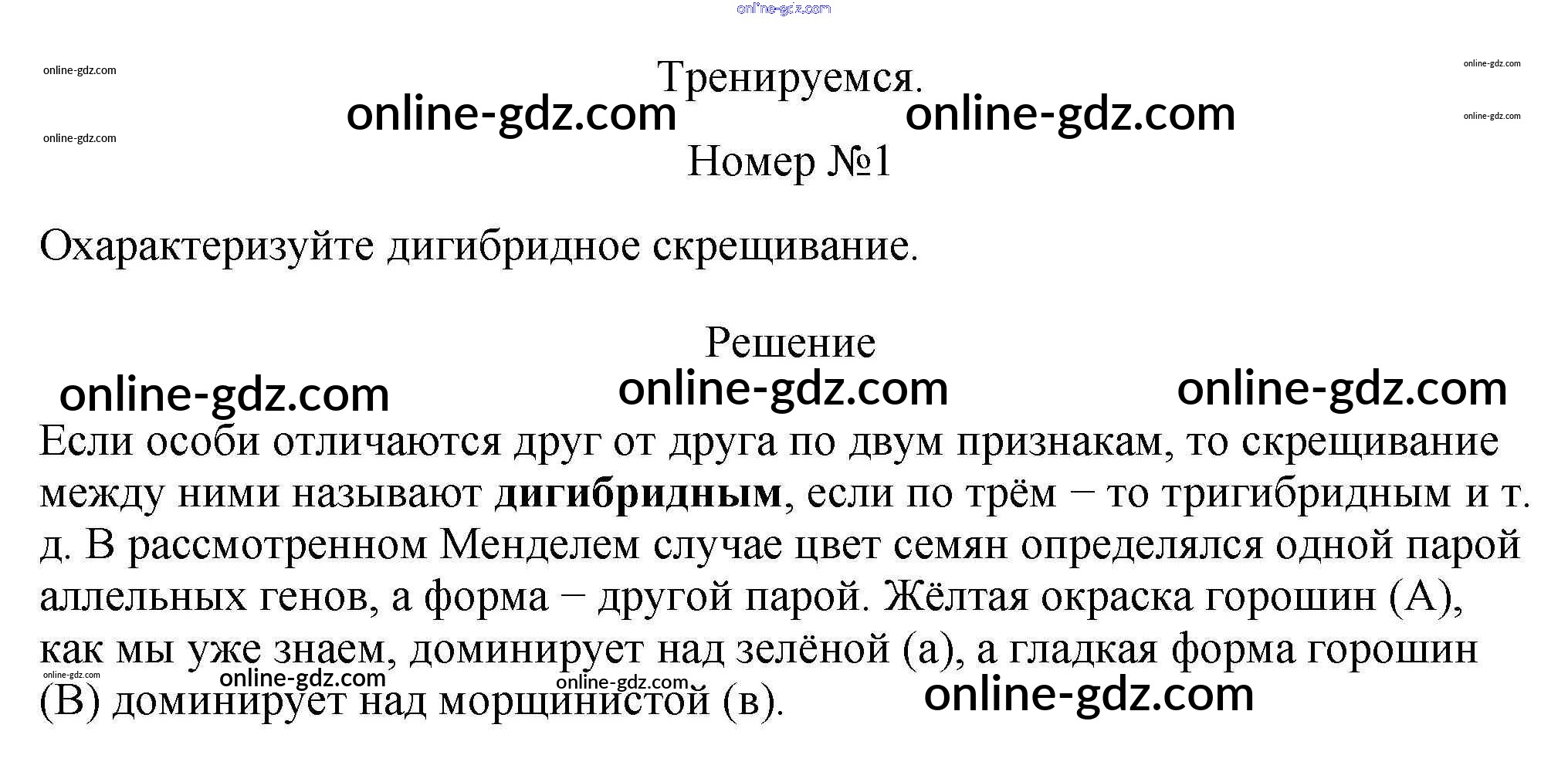Готовые домашние задания по Биологии за 11 класс Учебник Пасечник, Каменский Линия жизни Базовый уровень 2018 - Тренируемся §6. Дигибридное скрещивание. Закон независимого наследования признаков 1