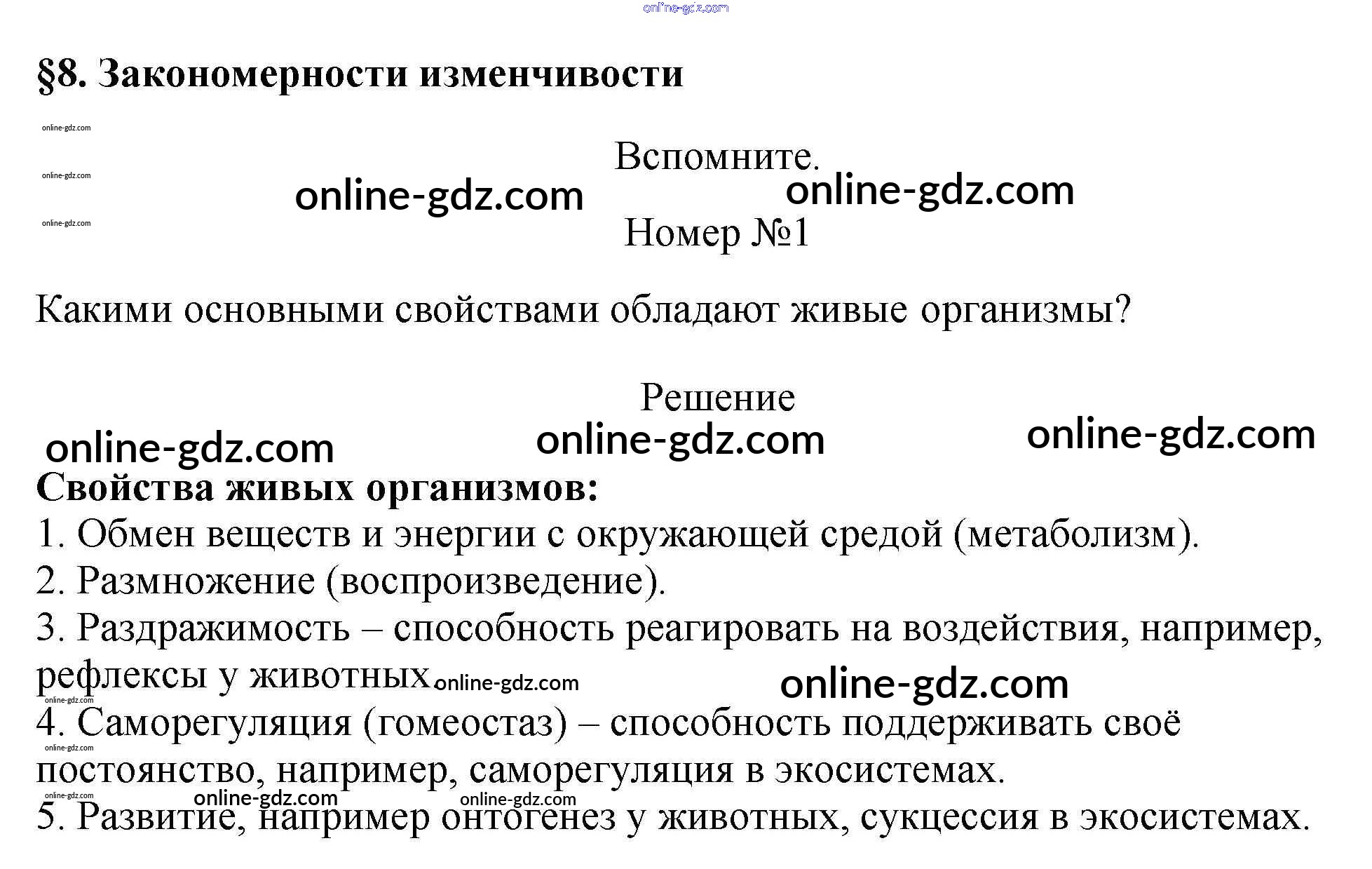 Готовые домашние задания по Биологии за 11 класс Учебник Пасечник, Каменский Линия жизни Базовый уровень 2018 - Вспомните §8. Закономерности изменчивости 1