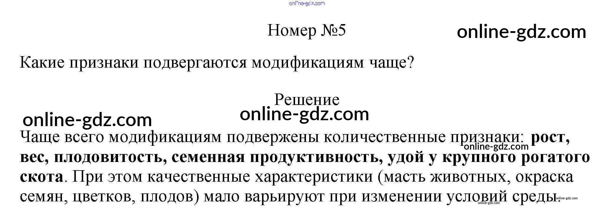 Готовые домашние задания по Биологии за 11 класс Учебник Пасечник, Каменский Линия жизни Базовый уровень 2018 - Тренируемся §8. Закономерности изменчивости 5