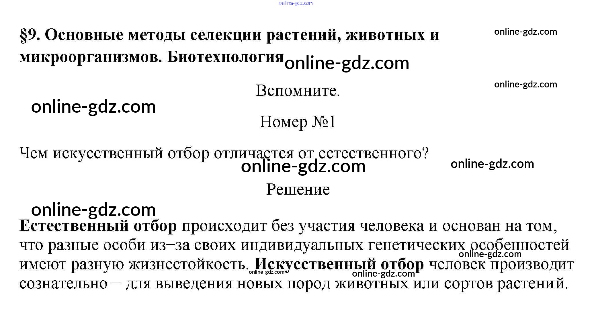 Готовые домашние задания по Биологии за 11 класс Учебник Пасечник, Каменский Линия жизни Базовый уровень 2018 - Вспомните §9. Основные методы селекции растений, животных и микроорганизмов. 1