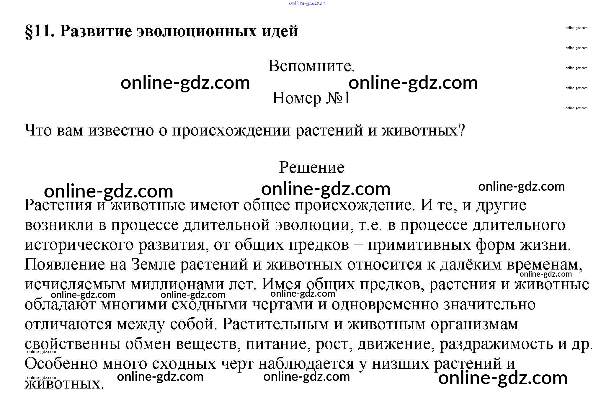 Готовые домашние задания по Биологии за 11 класс Учебник Пасечник, Каменский Линия жизни Базовый уровень 2018 - Вспомните §11. Развитие эволюционных идей 1