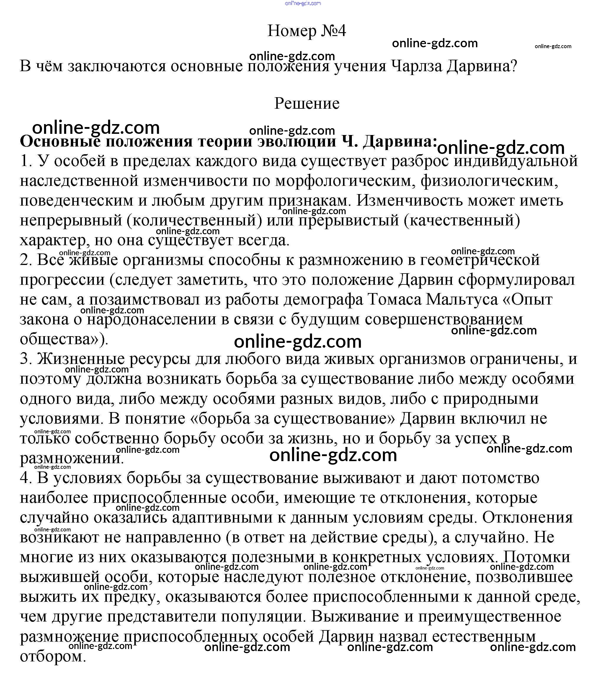 Готовые домашние задания по Биологии за 11 класс Учебник Пасечник, Каменский Линия жизни Базовый уровень 2018 - Тренируемся §11. Развитие эволюционных идей 4
