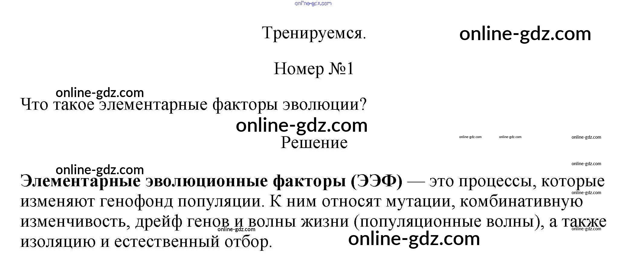 Готовые домашние задания по Биологии за 11 класс Учебник Пасечник, Каменский Линия жизни Базовый уровень 2018 - Тренируемся §12. Движущие силы эволюции, их влияние на генофонд популяции 1