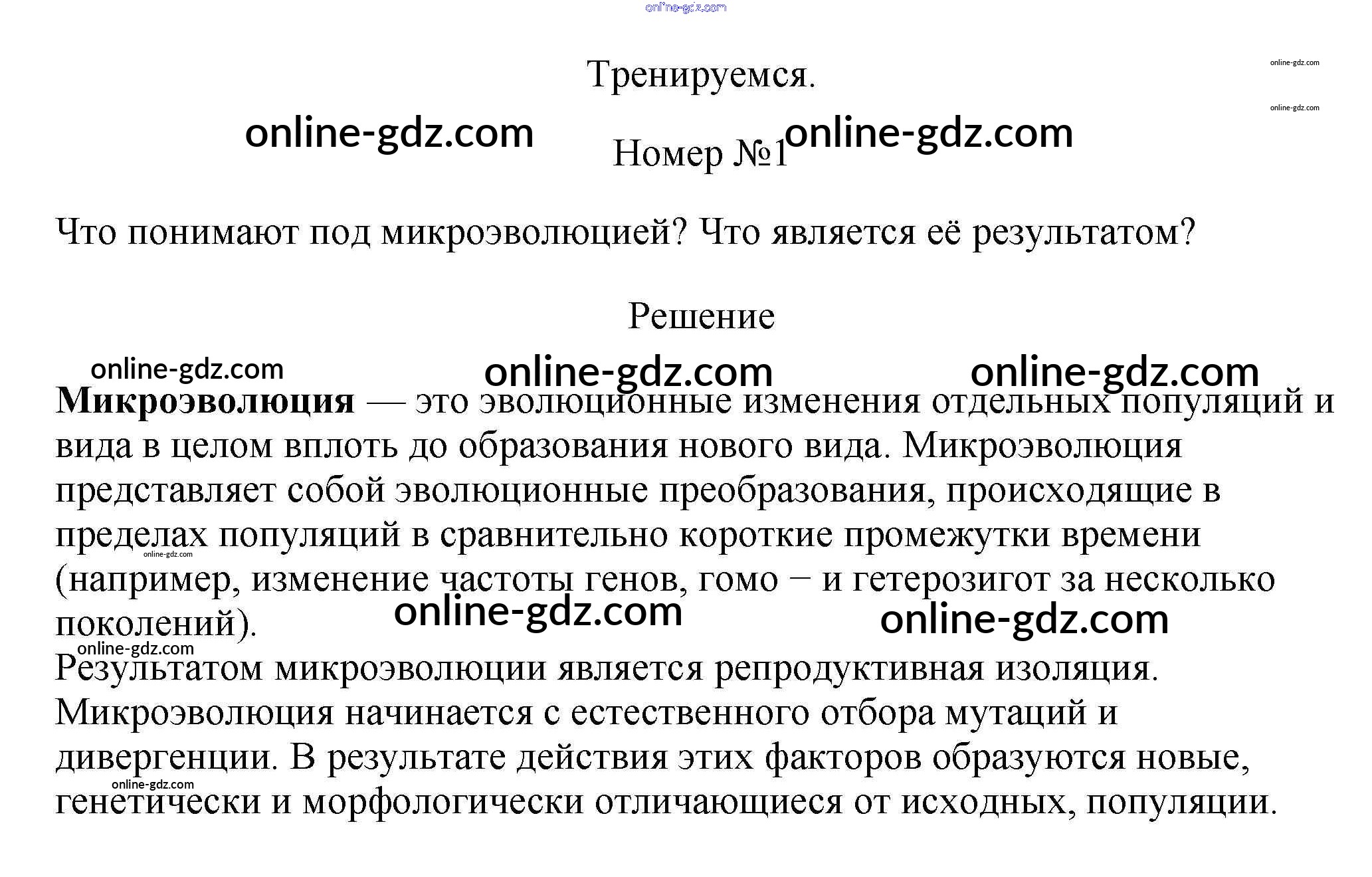 Готовые домашние задания по Биологии за 11 класс Учебник Пасечник, Каменский Линия жизни Базовый уровень 2018 - Тренируемся §14. Микроэволюция и макроэволюция 1