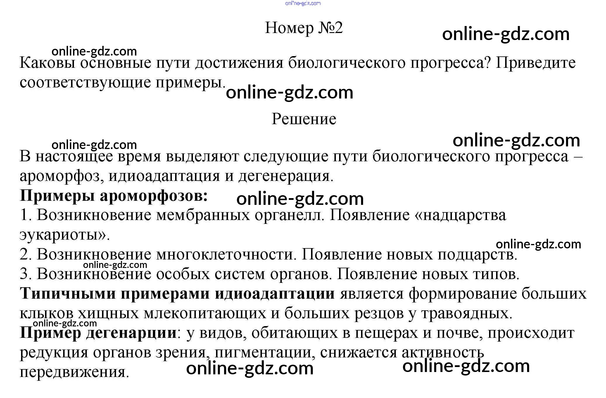 Готовые домашние задания по Биологии за 11 класс Учебник Пасечник, Каменский Линия жизни Базовый уровень 2018 - Тренируемся §15. Направления эволюции 2