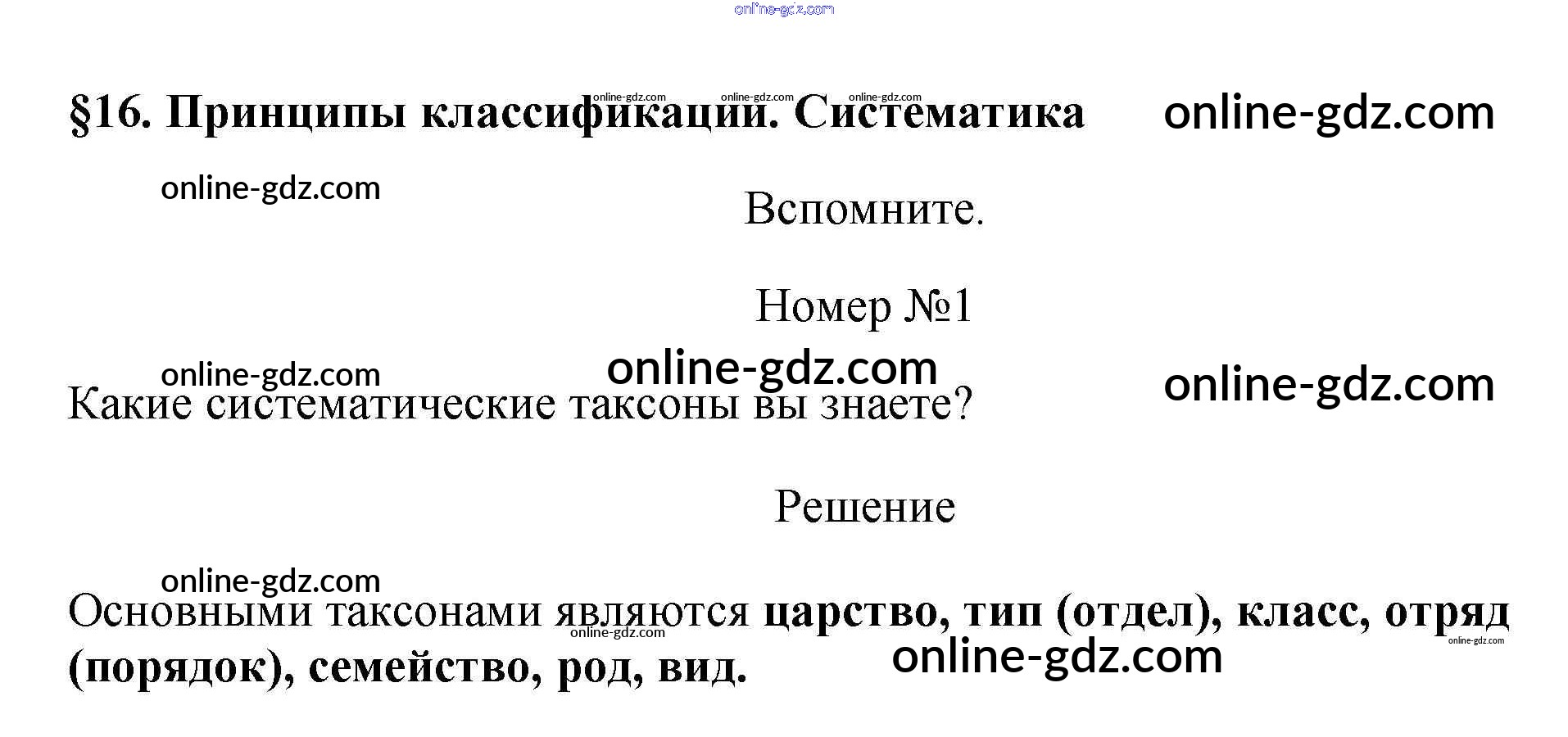 Готовые домашние задания по Биологии за 11 класс Учебник Пасечник, Каменский Линия жизни Базовый уровень 2018 - Вспомните §16. Принципы классификации. Систематика 1
