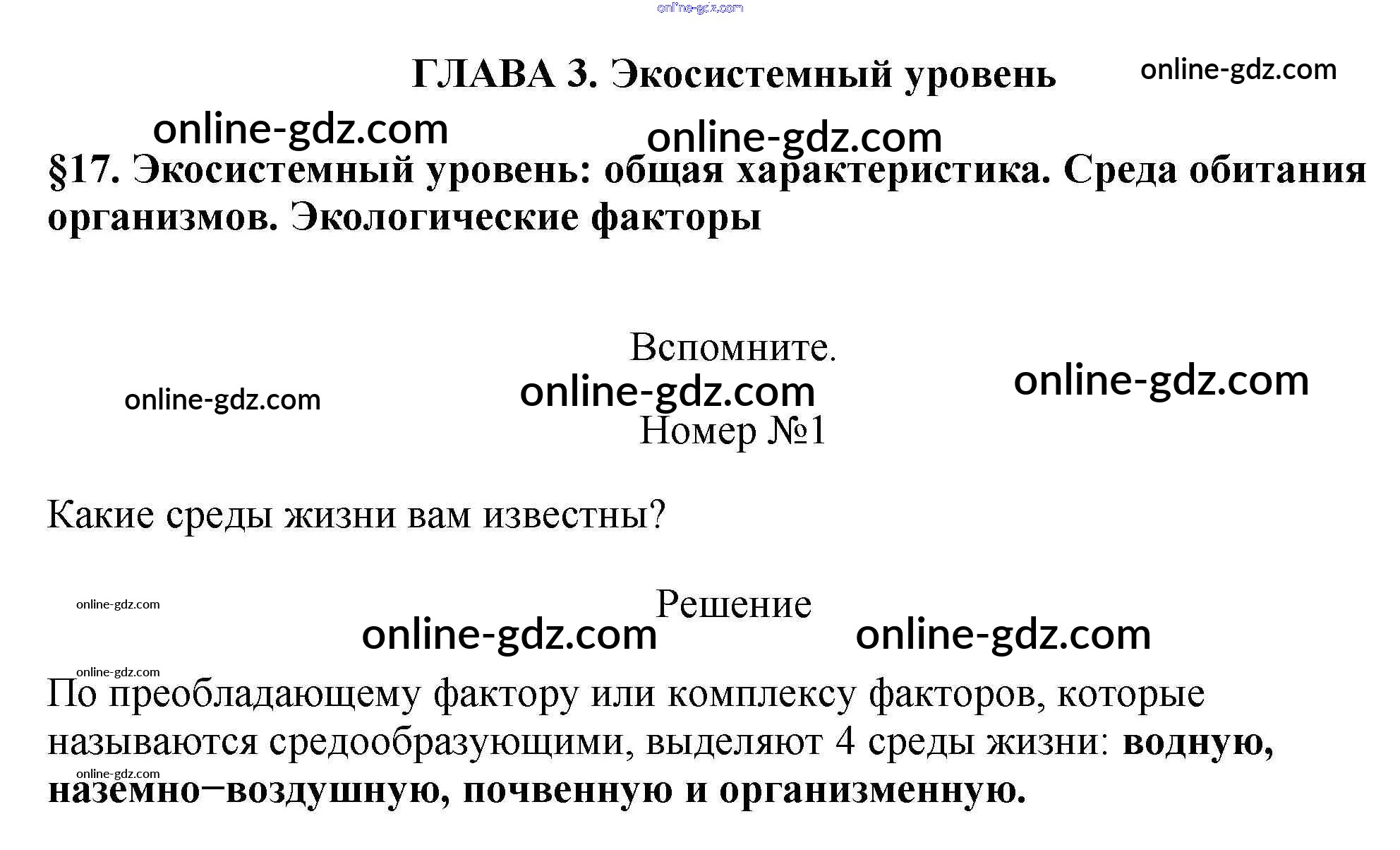 Готовые домашние задания по Биологии за 11 класс Учебник Пасечник, Каменский Линия жизни Базовый уровень 2018 - Вспомните §17. Экосистемный уровень: общая характеристика. Среда обитания организмов. Экологические факторы 1