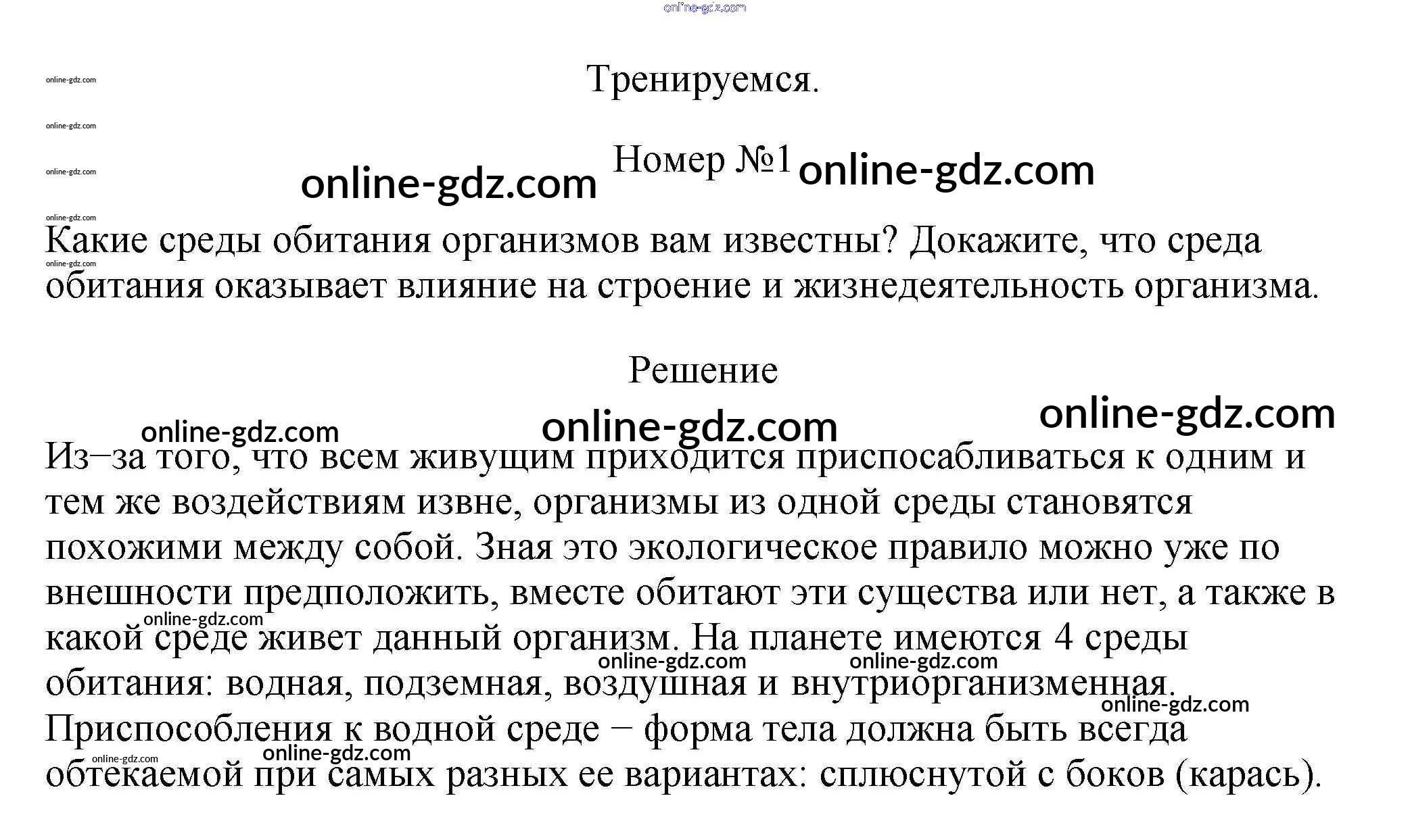 Готовые домашние задания по Биологии за 11 класс Учебник Пасечник, Каменский Линия жизни Базовый уровень 2018 - Тренируемся §17. Экосистемный уровень: общая характеристика. Среда обитания организмов. Экологические факторы 1