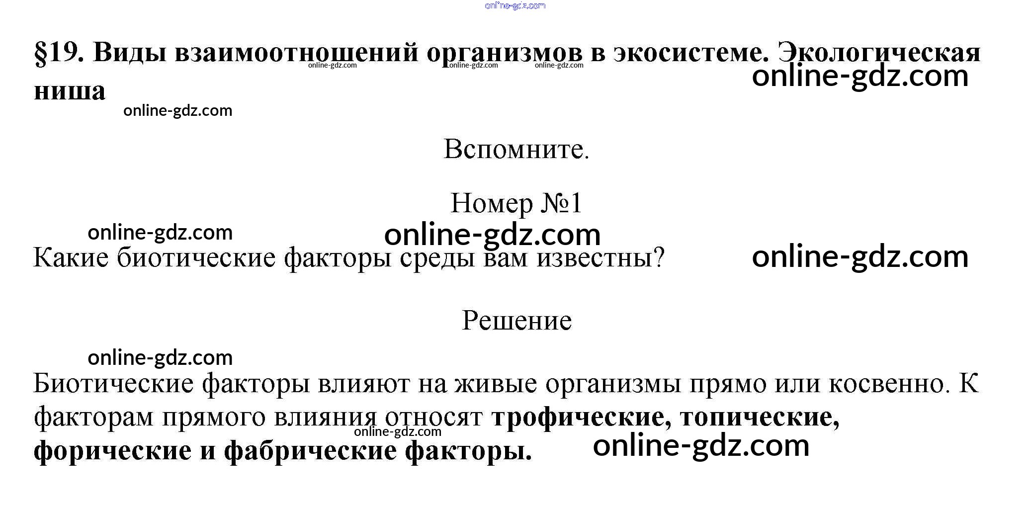 Готовые домашние задания по Биологии за 11 класс Учебник Пасечник, Каменский Линия жизни Базовый уровень 2018 - Вспомните §19. Виды взаимоотношений организмов в экосистеме. 1