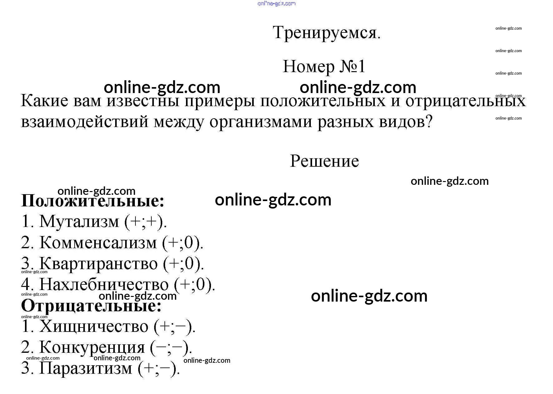 Готовые домашние задания по Биологии за 11 класс Учебник Пасечник, Каменский Линия жизни Базовый уровень 2018 - Тренируемся §19. Виды взаимоотношений организмов в экосистеме. 1